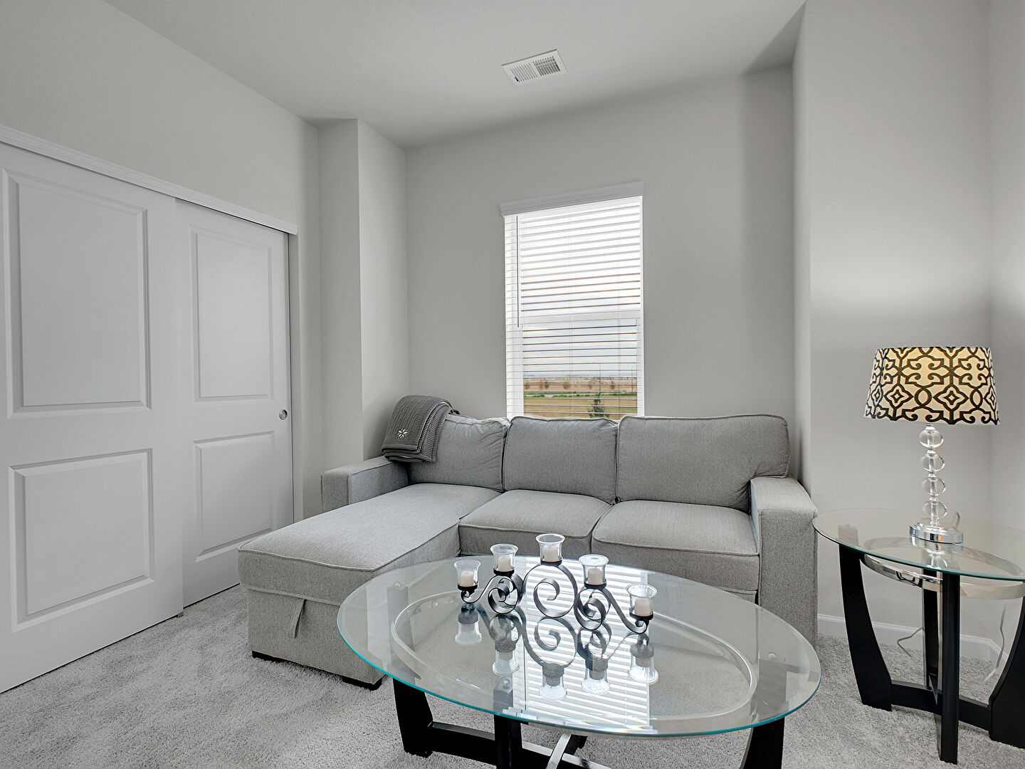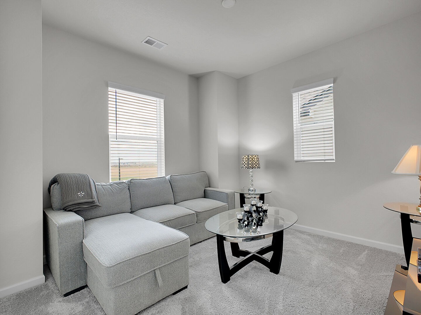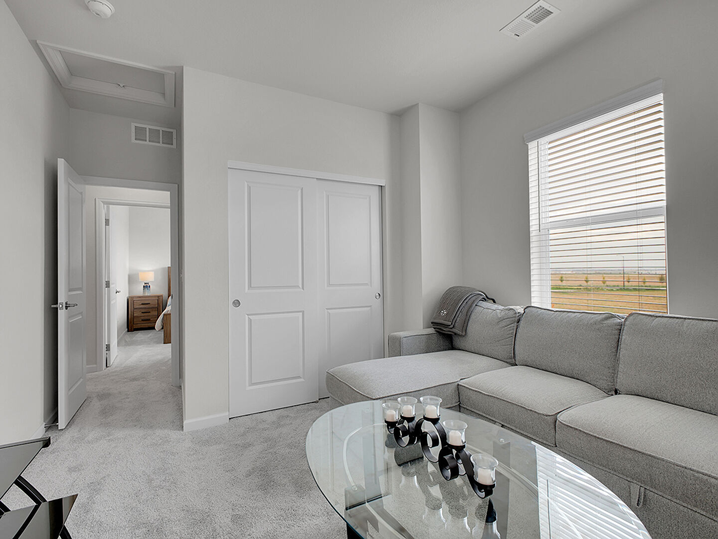 Baseboards Wall, Carpet, Drywall, Natural Light, Smoke Carbon Monoxide Detector, Vent, Scuttle