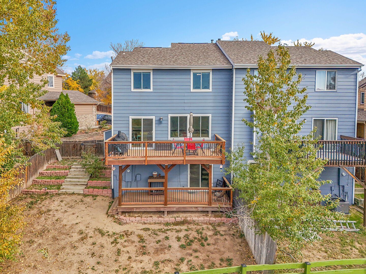 Central Ac, Deck, Downspout, Electric Meter, Fence, Gutters, Horizontal Siding, Shingle Roof, Stairs, Deck, Fence, Horizontal Siding, Lawn