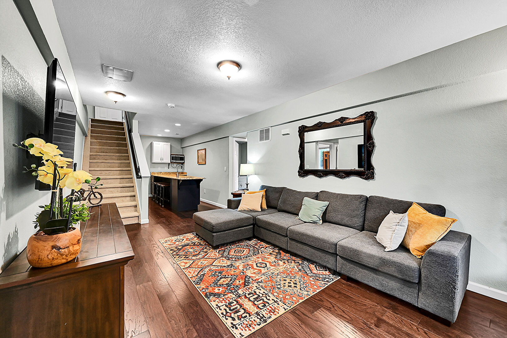 Baseboards Wall, Basement, Drywall, Fireplace, Natural Light, Stairs, Textured Ceiling, Vent, Wood Finish Floor, Baseboards Wall, Drywall, Textured Ceiling