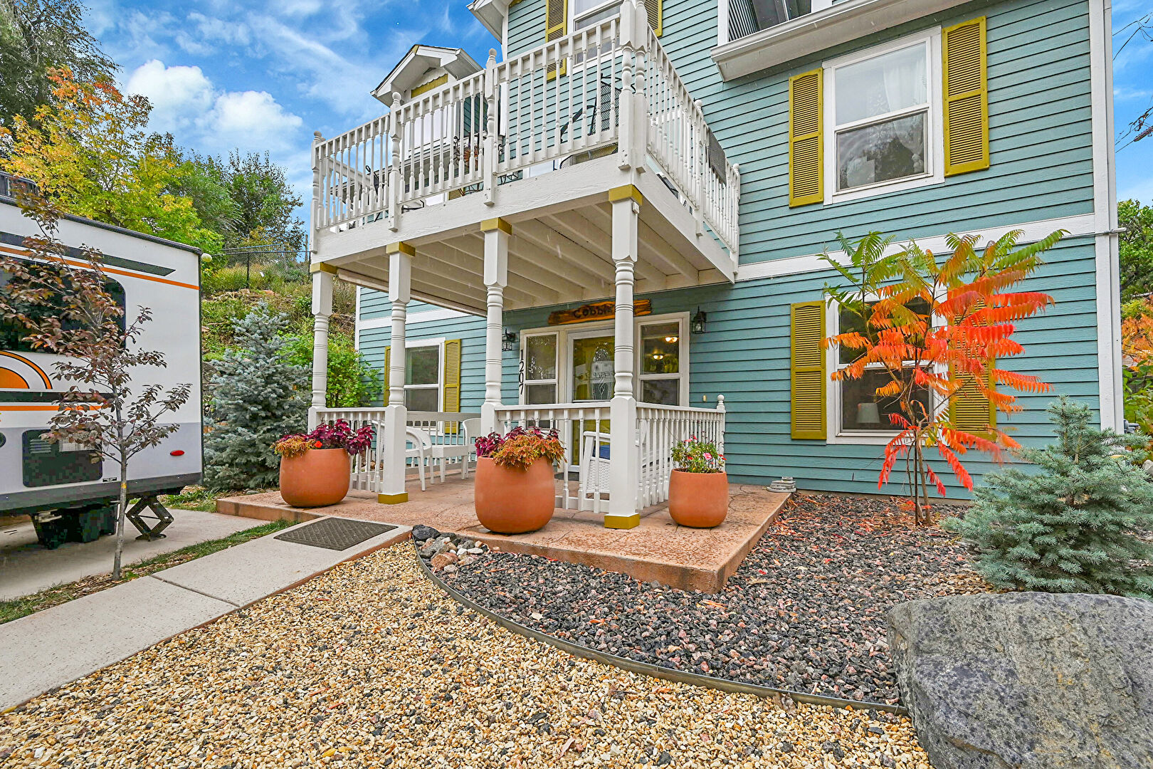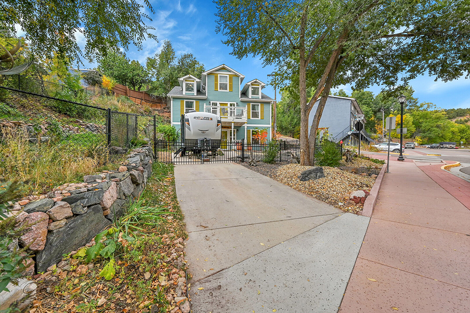 Balcony, Deck, Dormer Roof, Downspout, Driveway, Fence, Gate, Horizontal Siding, Parking Pad, Patio, Stairs, Downspout, Fence, Horizontal Siding, Patio