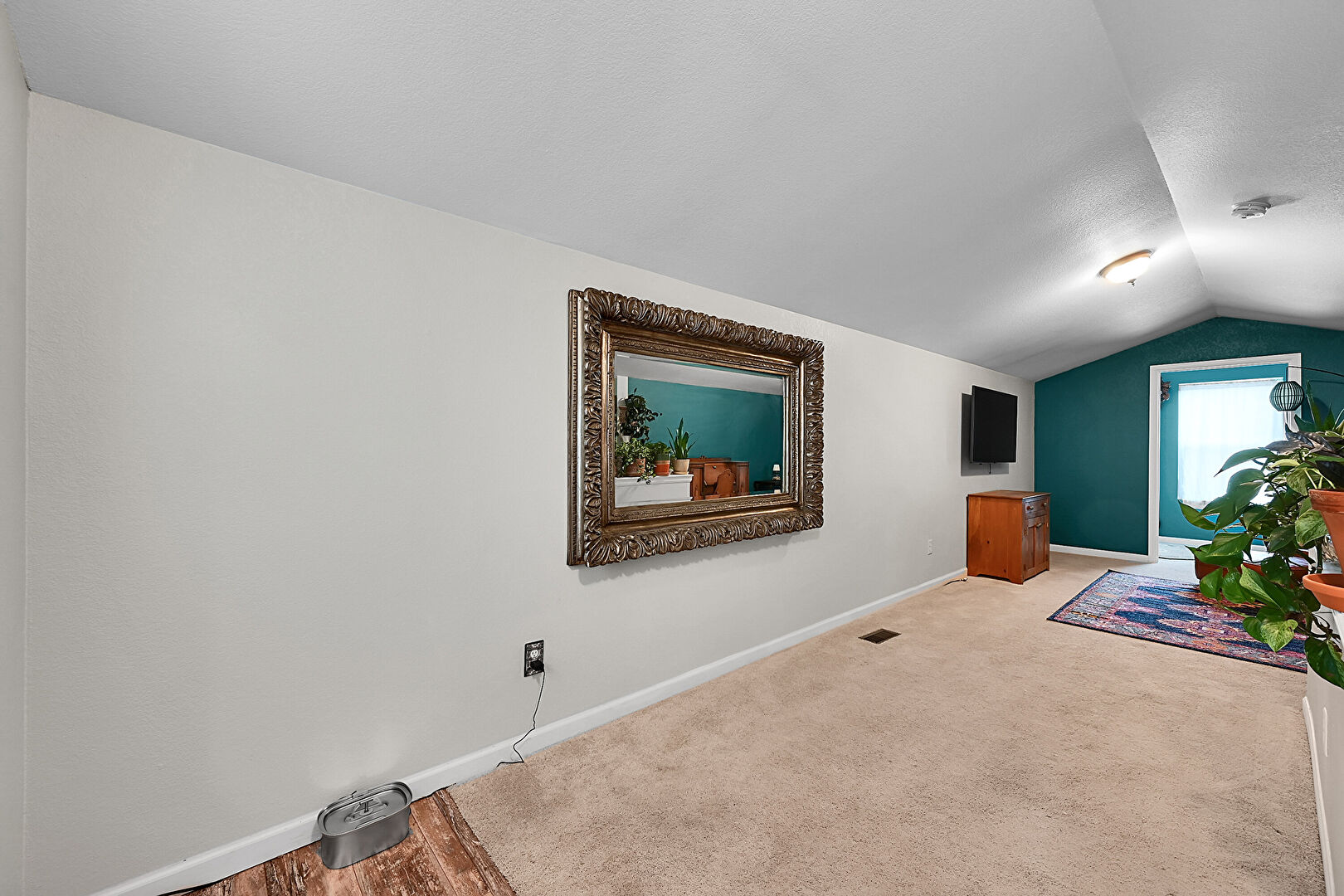 Baseboards Wall, Bonus Room, Carpet, Cathedral Ceiling, Drywall, Natural Light, Textured Ceiling, Textured Wall, Vaulted Ceiling, Vent, Baseboards Wall, Cathedral Ceiling, Vaulted Ceiling
