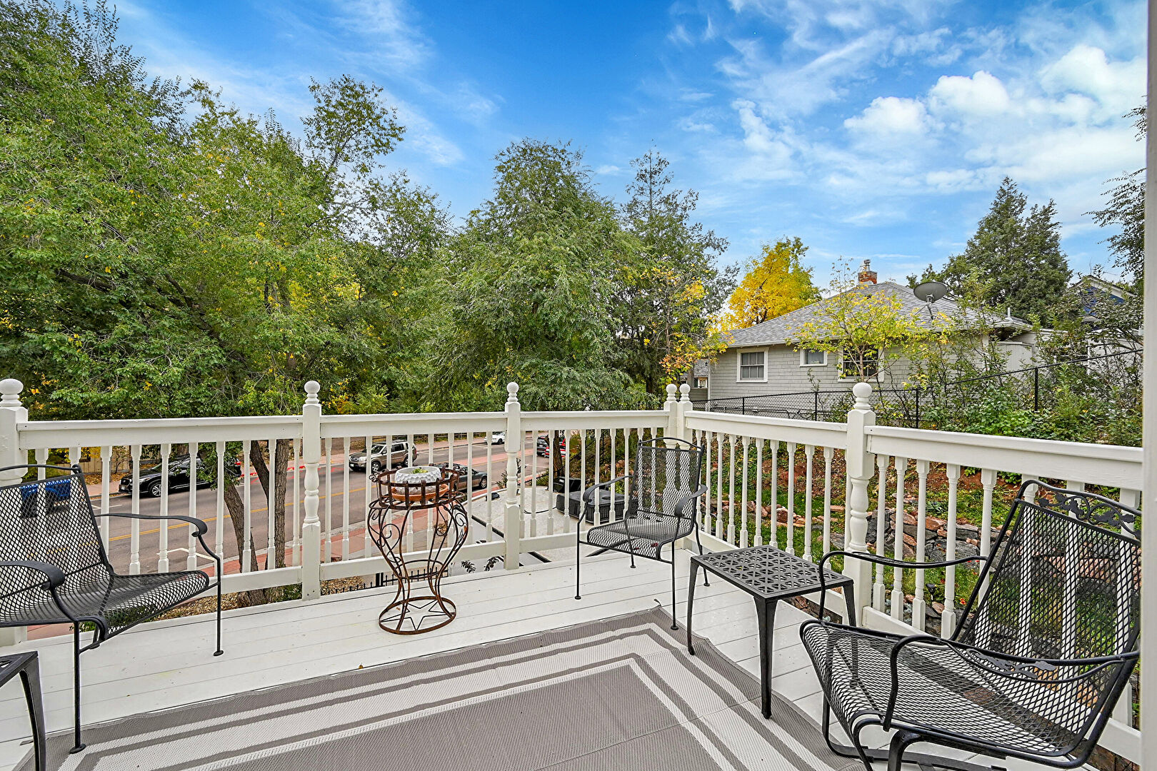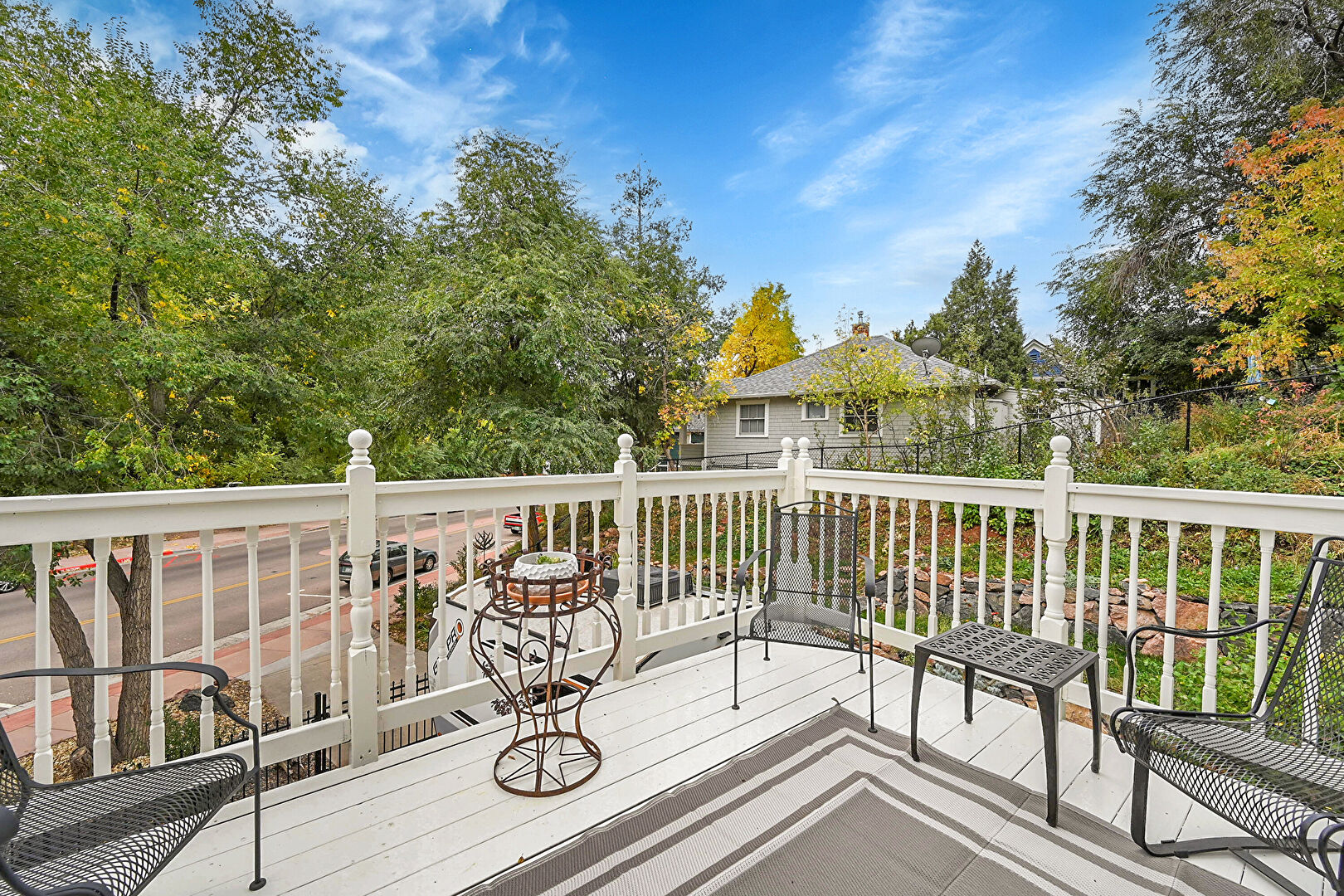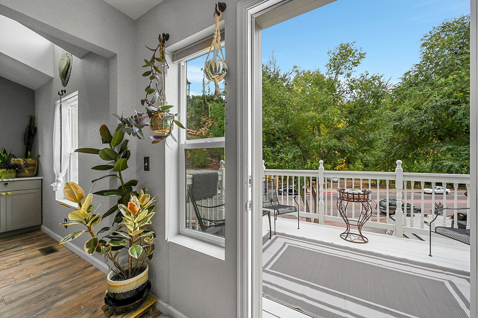 Balcony, Baseboards Wall, Deck, Drywall, Natural Light, Vent, Wood Finish Floor, Woods View, Fence, Woods View