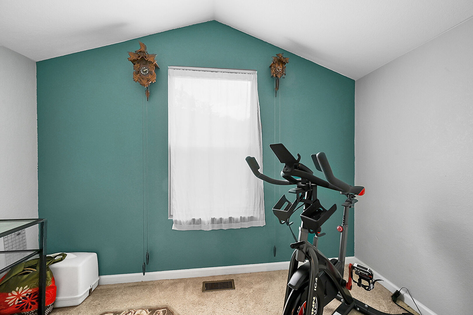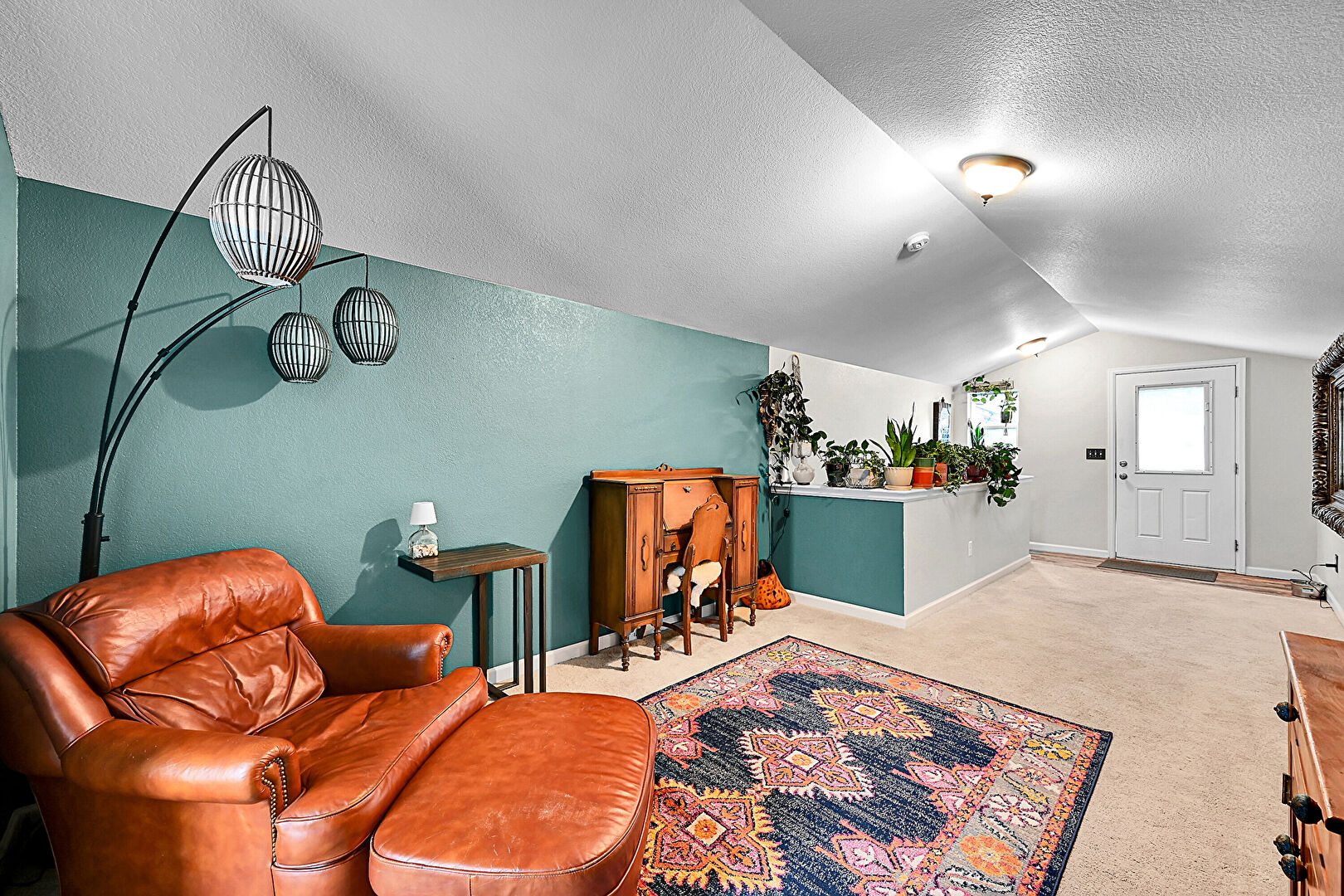 Baseboards Wall, Carpet, Drywall, Natural Light, Vaulted Ceiling, Vent, Cathedral Ceiling