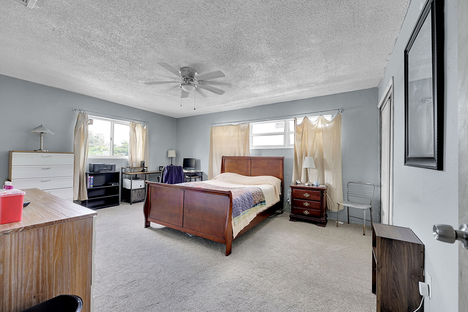 Carpet, Drywall, Natural Light