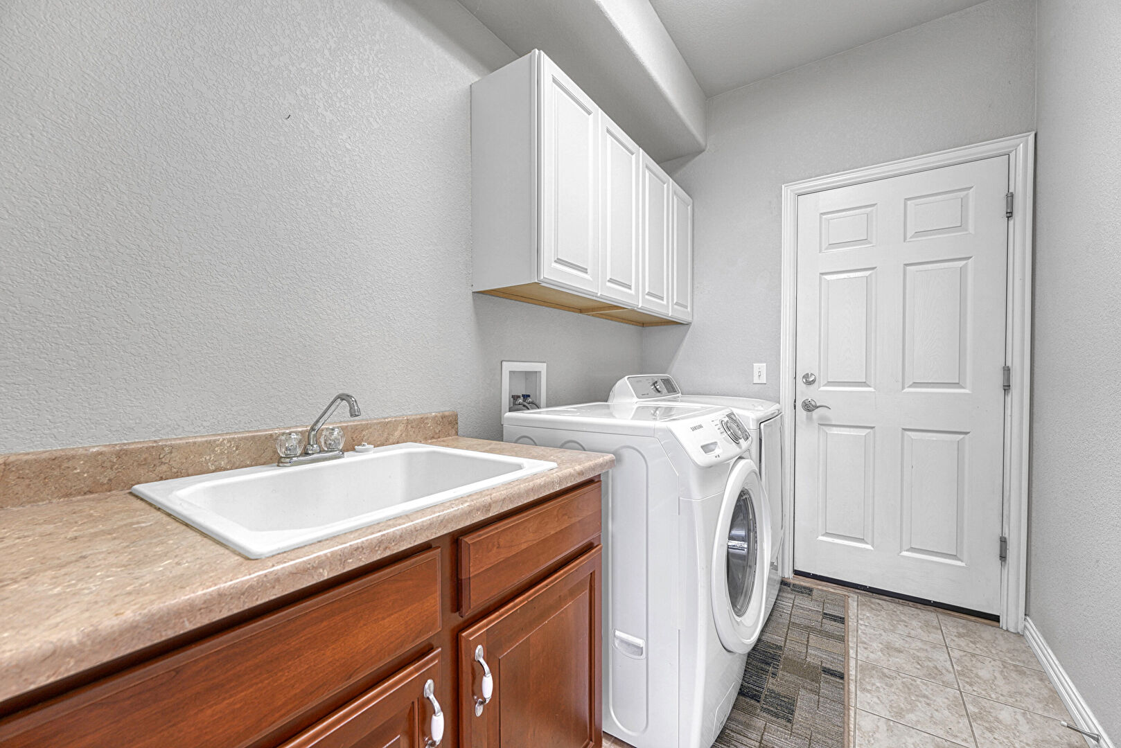 Baseboards Wall, Laundry, Textured Wall, Tile Floor, Washer Hookup