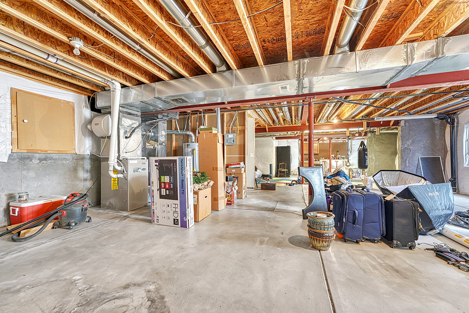 Basement, Furnace, Water Heater, Concrete Foundation, Stairs