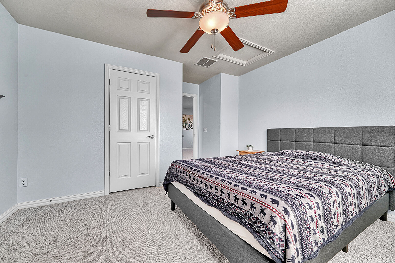 Baseboards Wall, Carpet, Ceiling Fan, Drywall, Ensuite Bathroom, Natural Light, Smoke Carbon Monoxide Detector, Textured Ceiling, Textured Wall, Vent, Baseboards Wall, Ceiling Fan, Drywall, Natural Light, Scuttle, Textured Ceiling