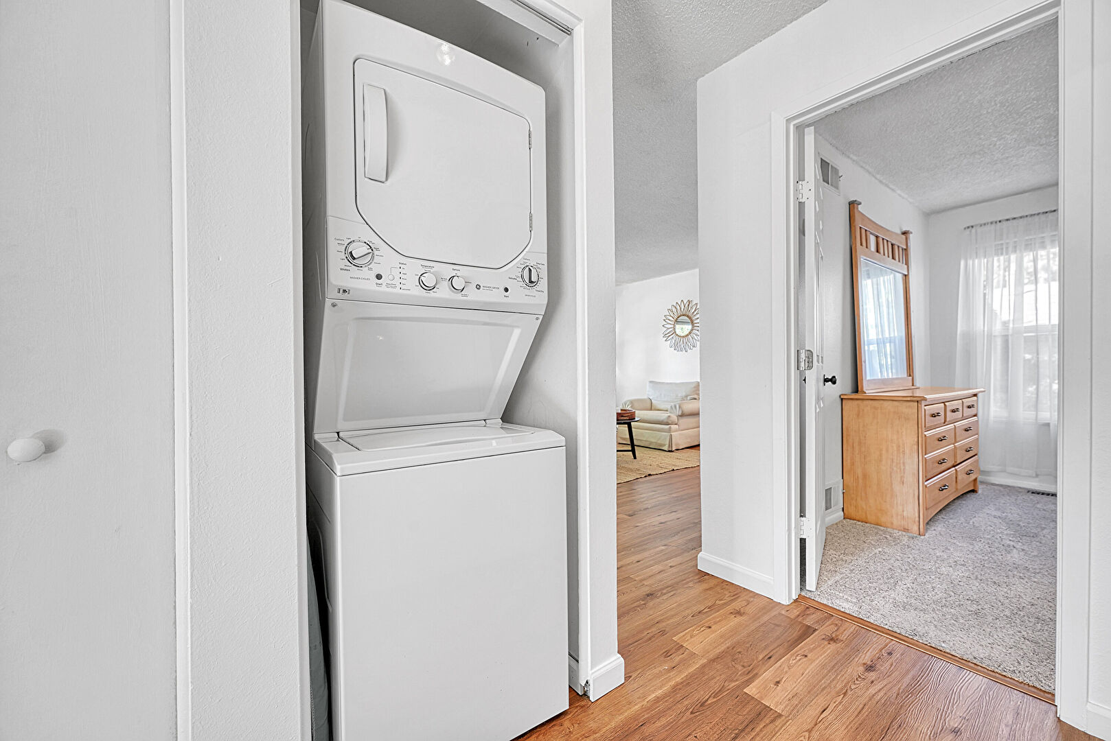Baseboards Wall, Carpet, Laundry, Natural Light, Textured Ceiling, Vent, Wood Finish Floor, Drywall