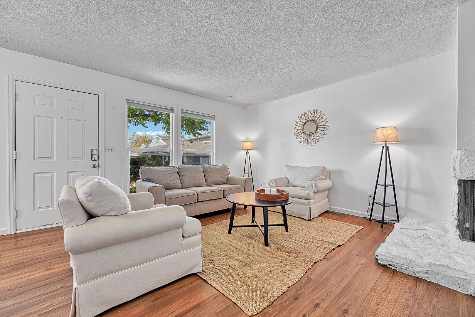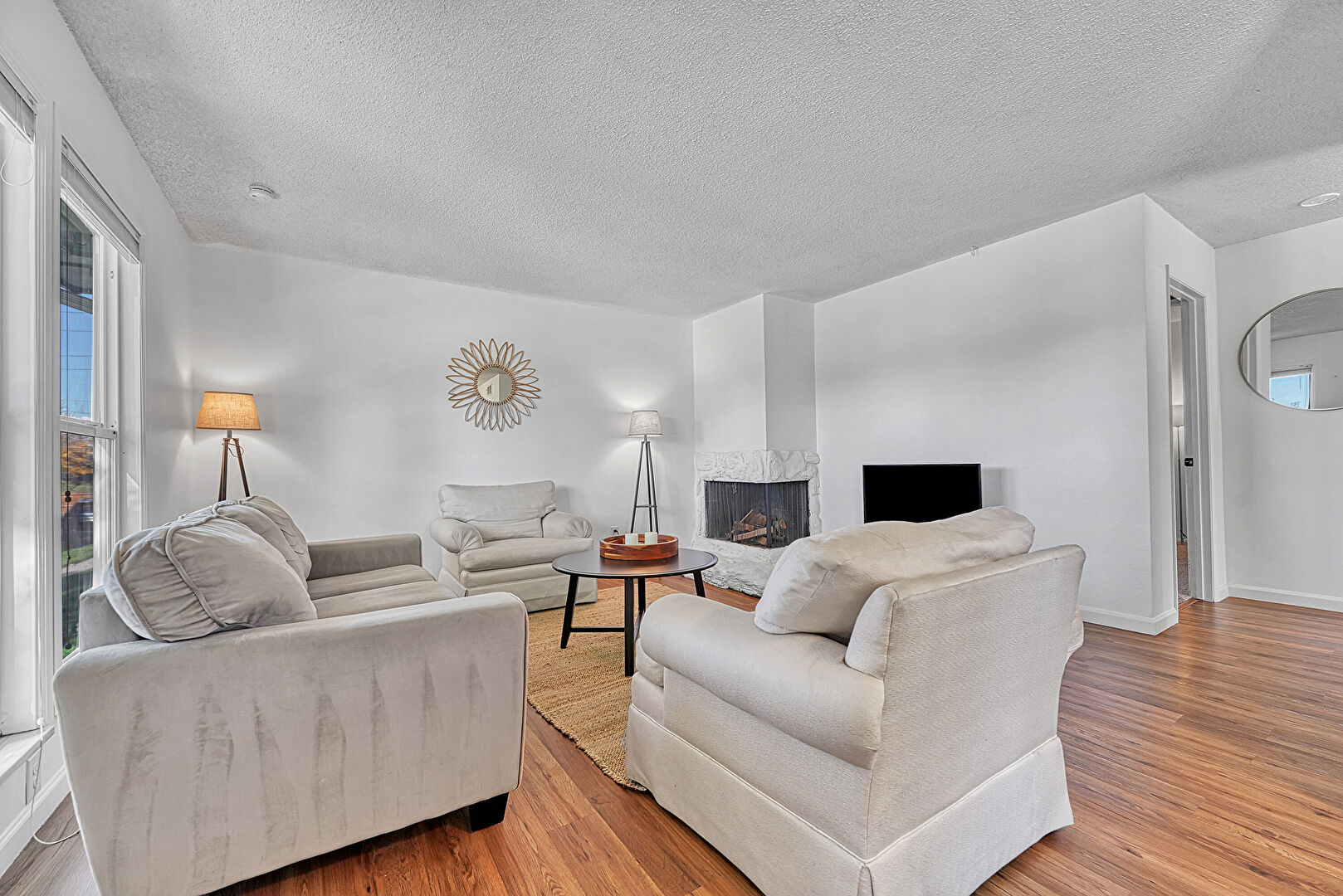 Baseboards Wall, Drywall, Fireplace, Natural Light, Textured Ceiling, Vent, Wood Finish Floor, Baseboards Wall, Natural Light, Wood Finish Floor