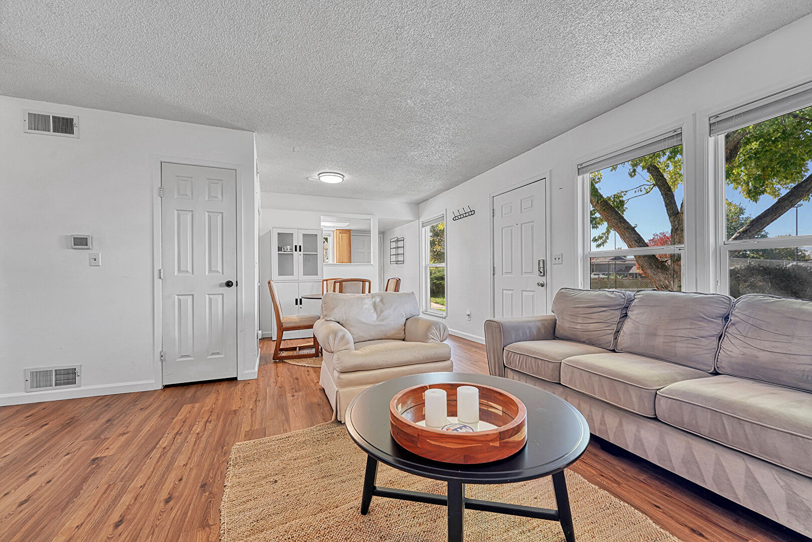 Baseboards Wall, Natural Light, Textured Ceiling, Vent, Wood Finish Floor, Drywall
