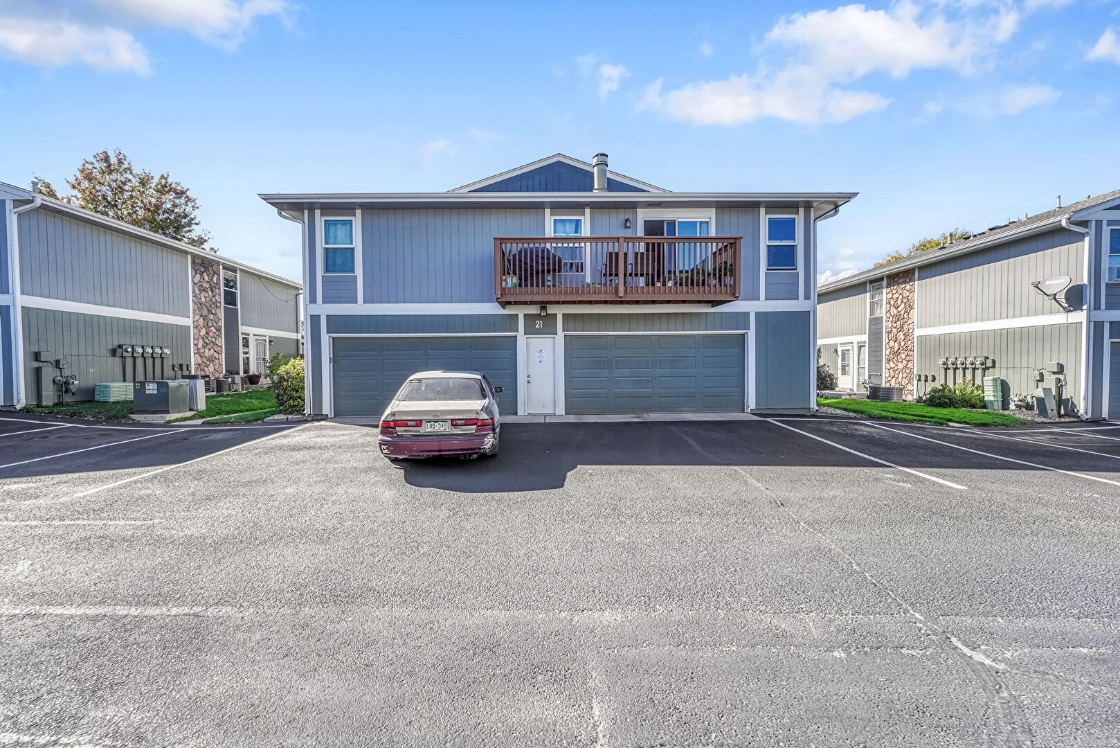 Balcony, Built In Garage, Downspout, Gutters, Vertical Siding, Driveway