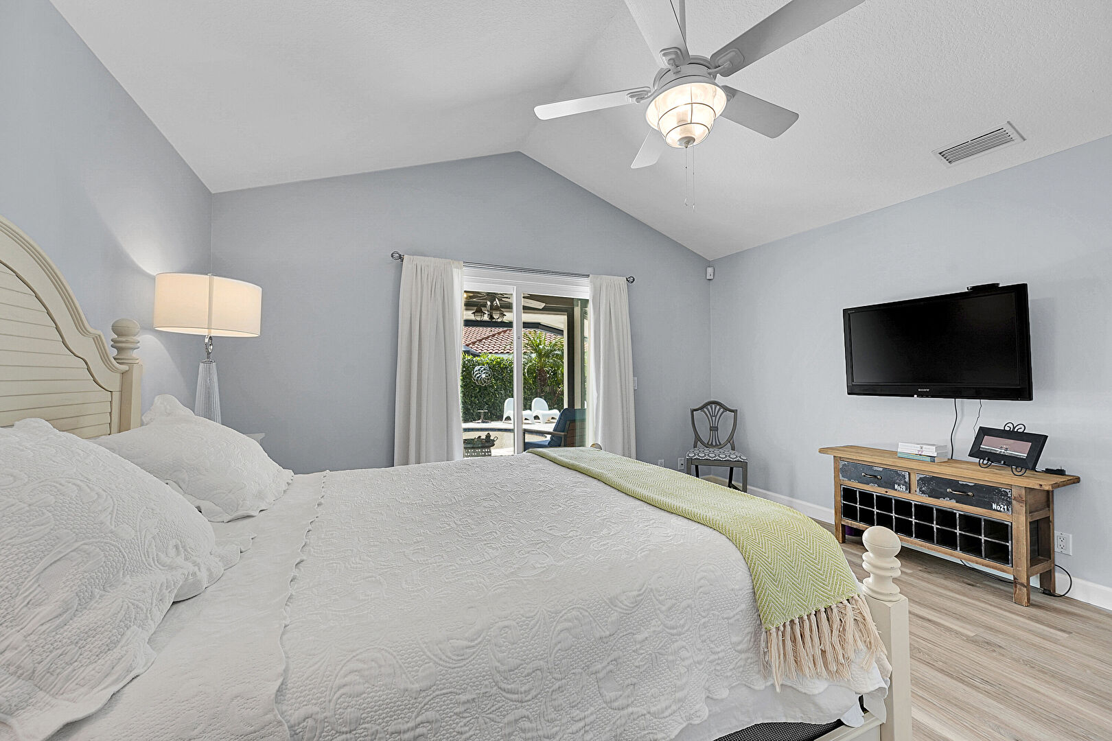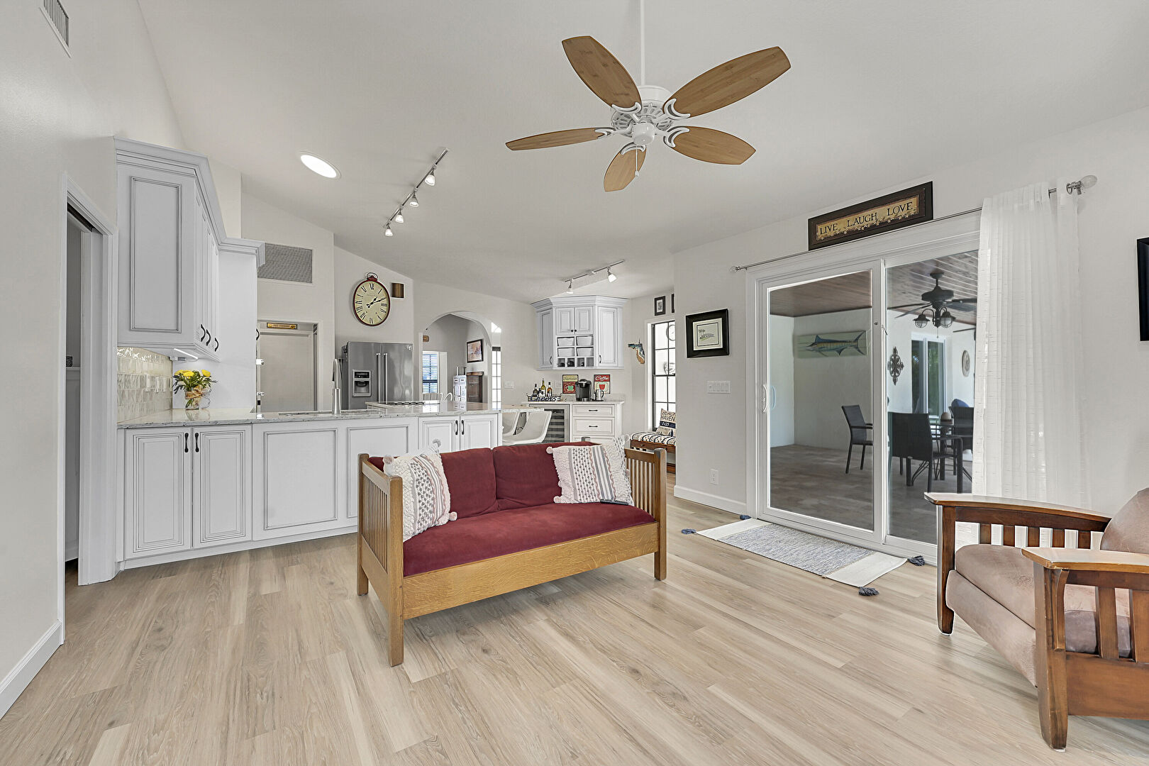 Access To Exterior, Baseboards Wall, Cathedral Ceiling, Ceiling Fan, Drywall, Natural Light, Vaulted Ceiling, Vent, Wood Finish Floor, Baseboards Wall, Cathedral Ceiling
