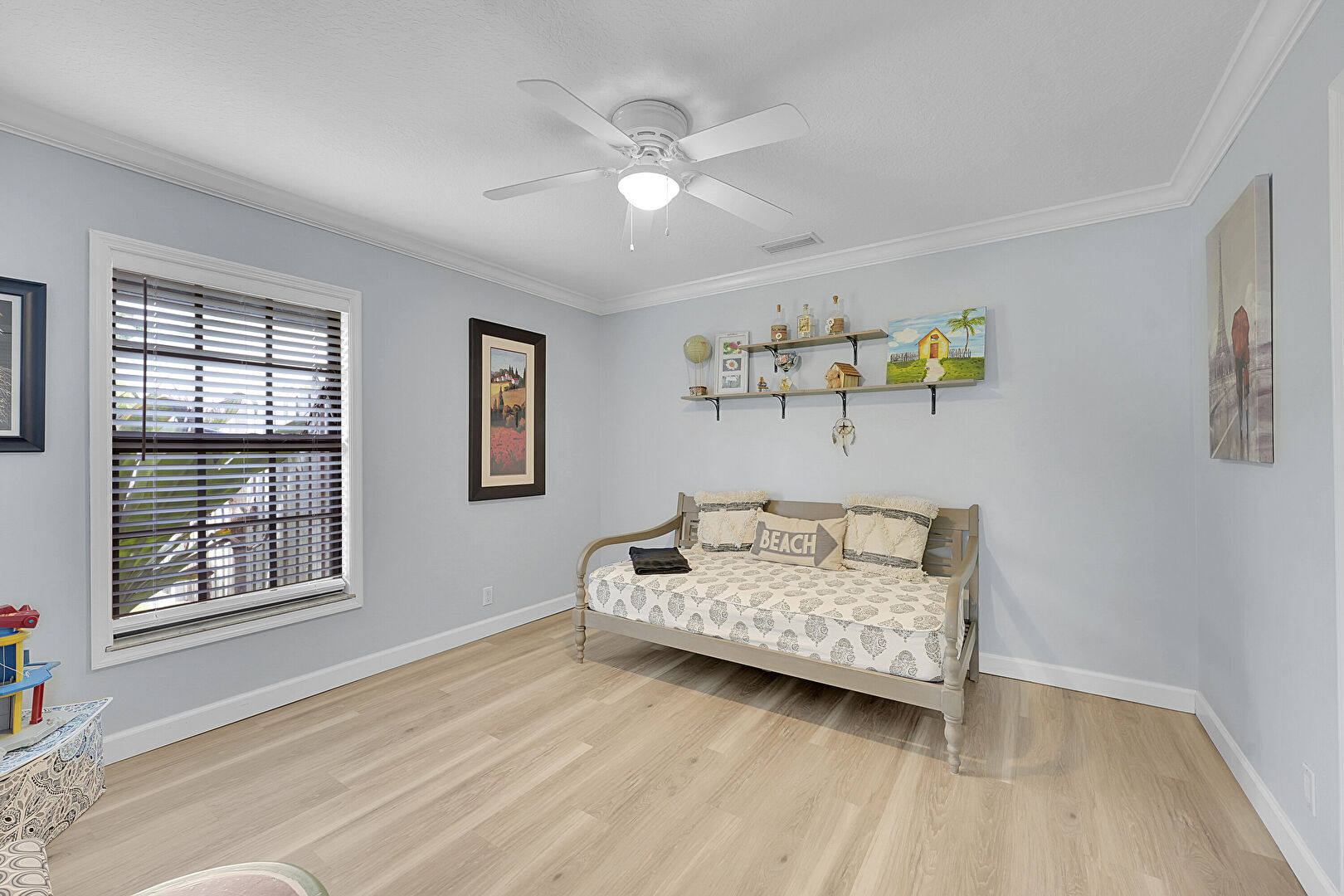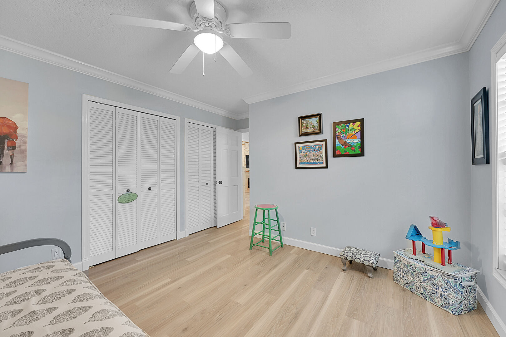 Baseboards Wall, Ceiling Fan, Closet, Crown Molding, Drywall, Natural Light, Textured Ceiling, Two Closets, Vent, Wood Finish Floor, Baseboards Wall, Ceiling Fan, Textured Ceiling, Vent, Wood Finish Floor