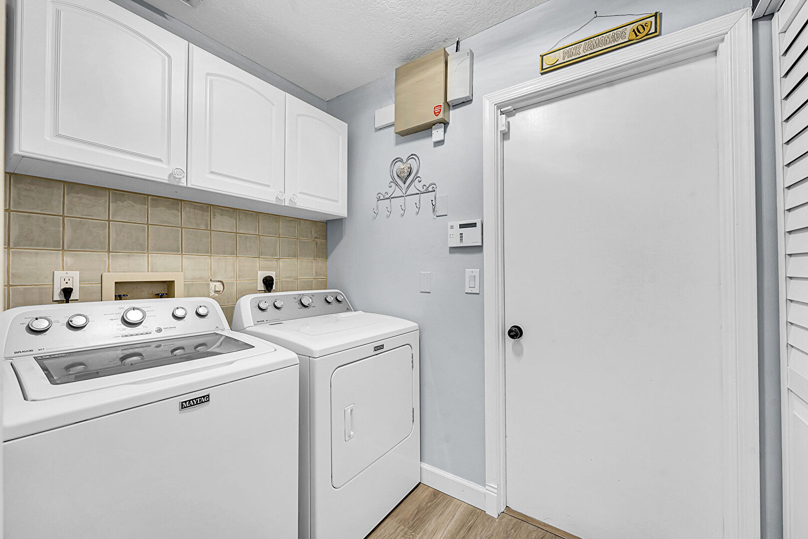 Baseboards Wall, Drywall, Electric Dryer Hookup, Laundry, Textured Ceiling, Wood Finish Floor, Washer Hookup