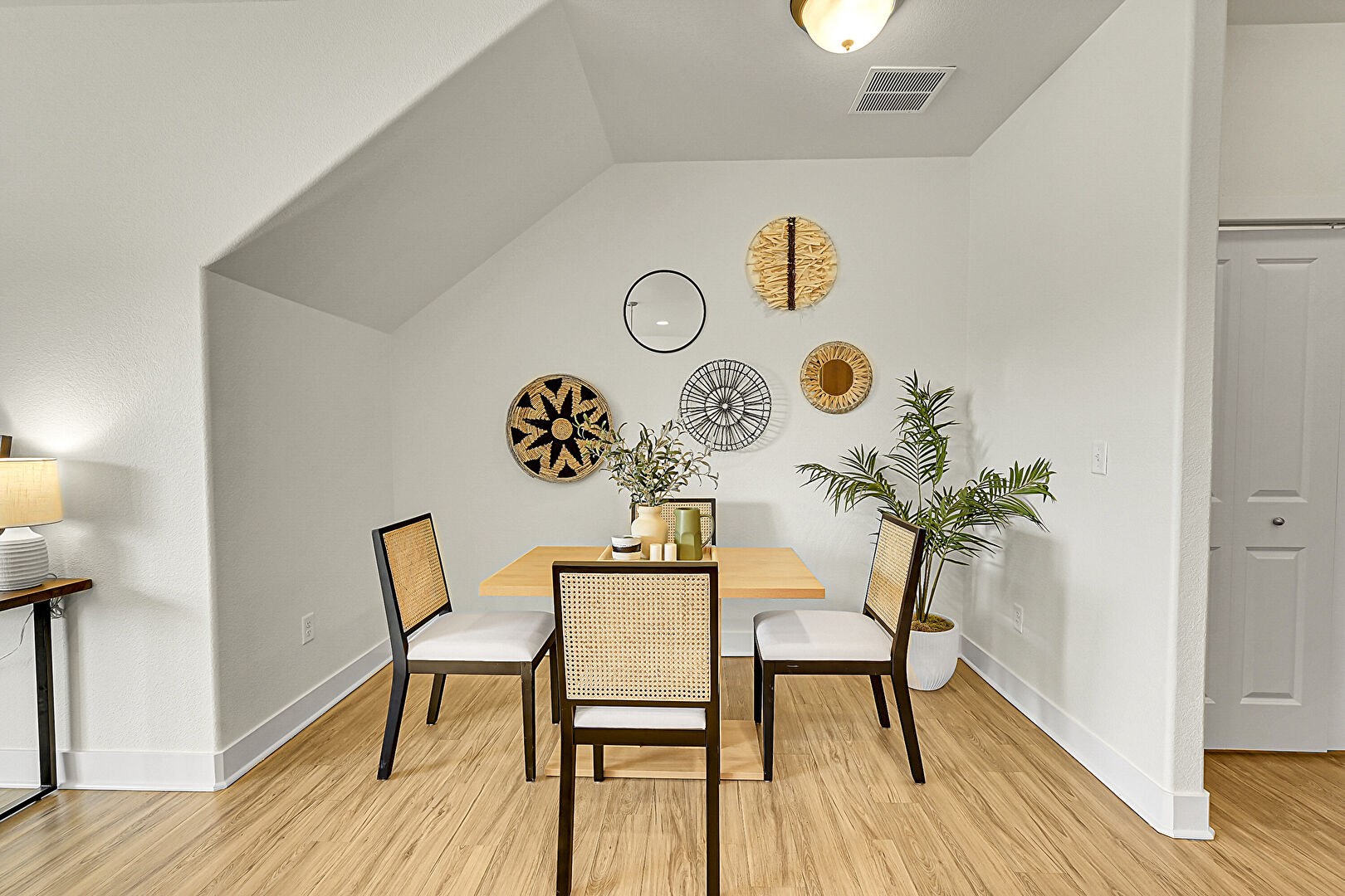 Drywall, Vaulted Ceiling, Vent, Wood Finish Floor, Baseboards Wall