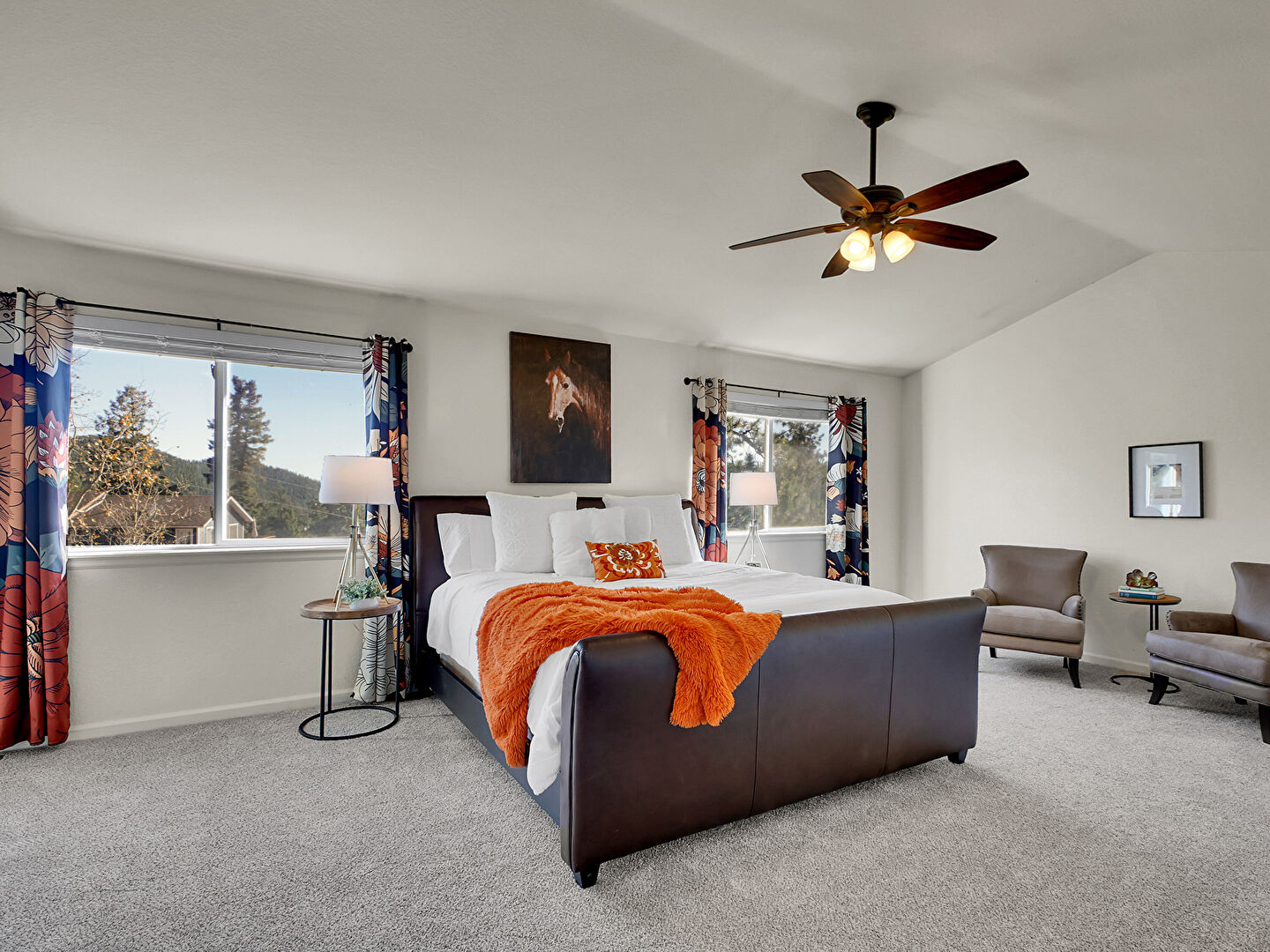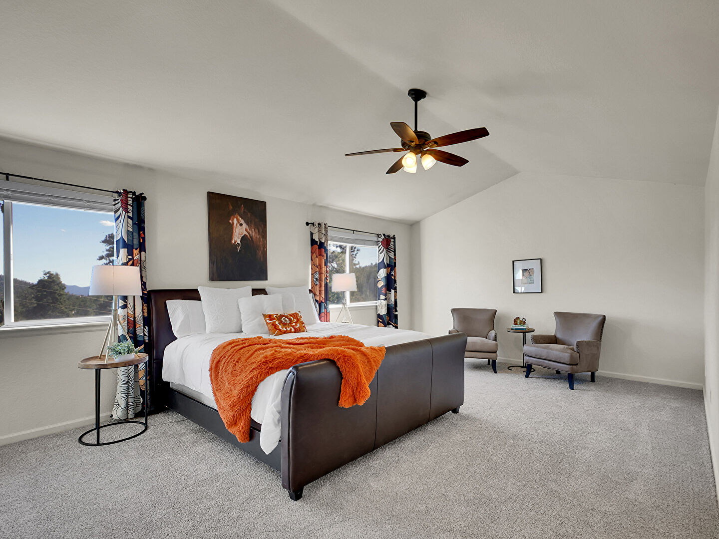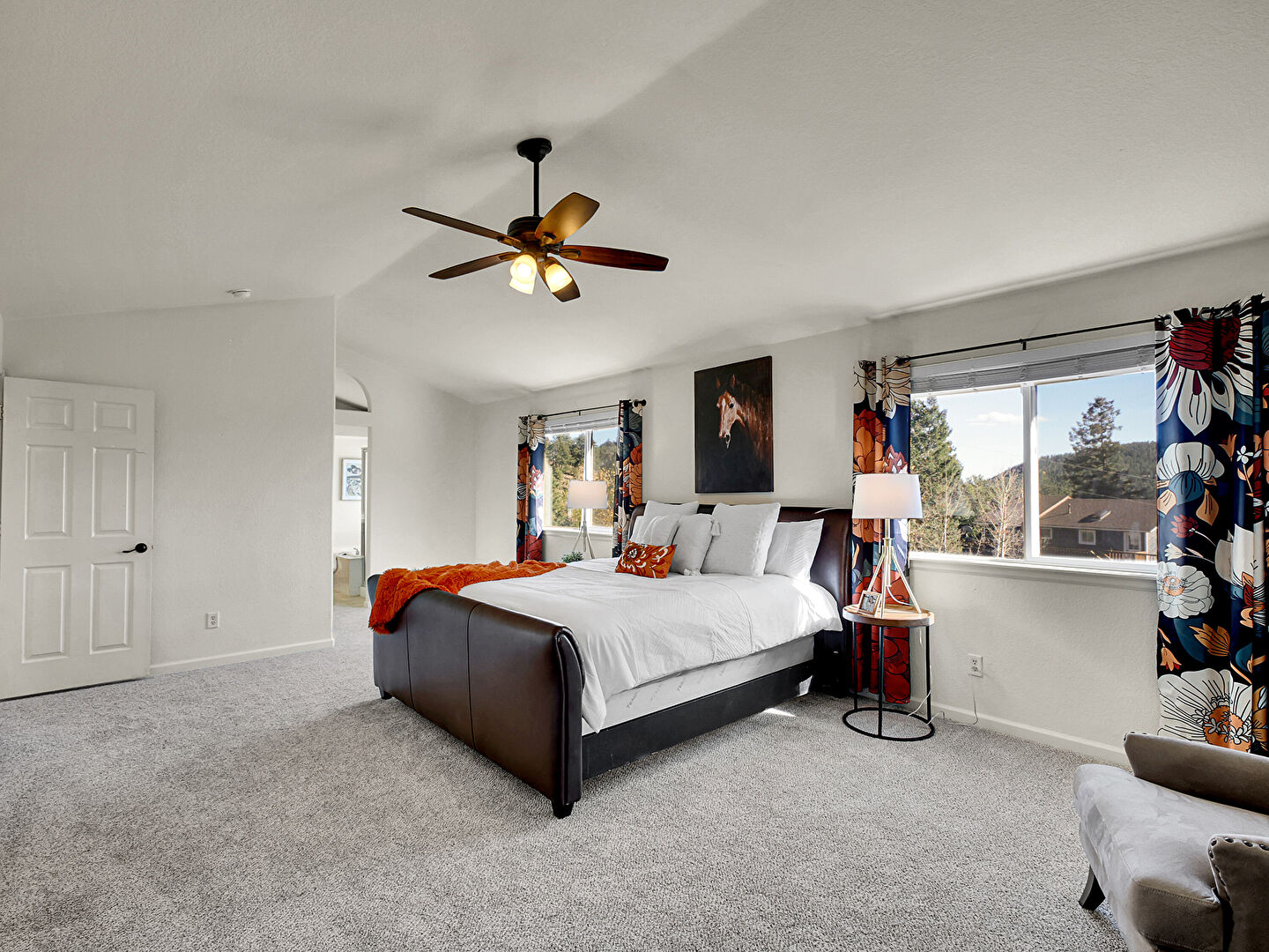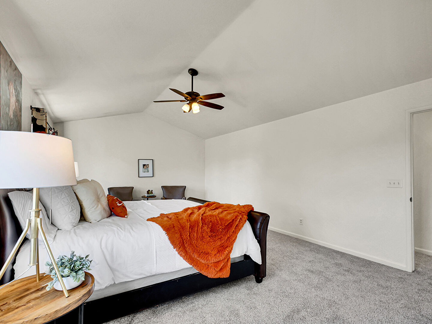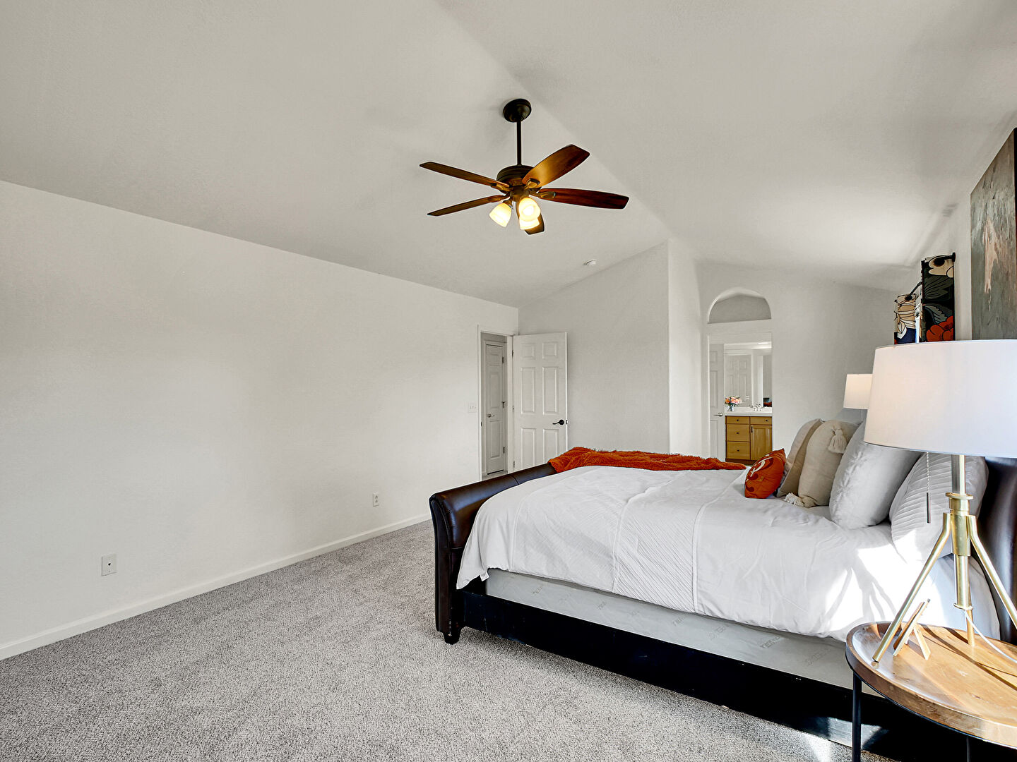 Arched Walkways,  Baseboards Wall,  Carpet,  Cathedral Ceiling,  Ceiling Fan,  Closet,  Drywall,  Ensuite Bathroom,  Natural Light,  Recessed Lighting,  Vaulted Ceiling,  Vent, Baseboards Wall, Carpet, Cathedral Ceiling, Ceiling Fan, Drywall, Ensuite Bathroom, Natural Light