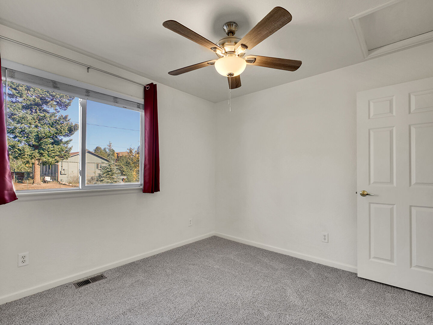 Baseboards Wall,  Carpet,  Ceiling Fan,  Drywall,  Natural Light,  Scuttle,  Vent, Baseboards Wall, Natural Light, Vent