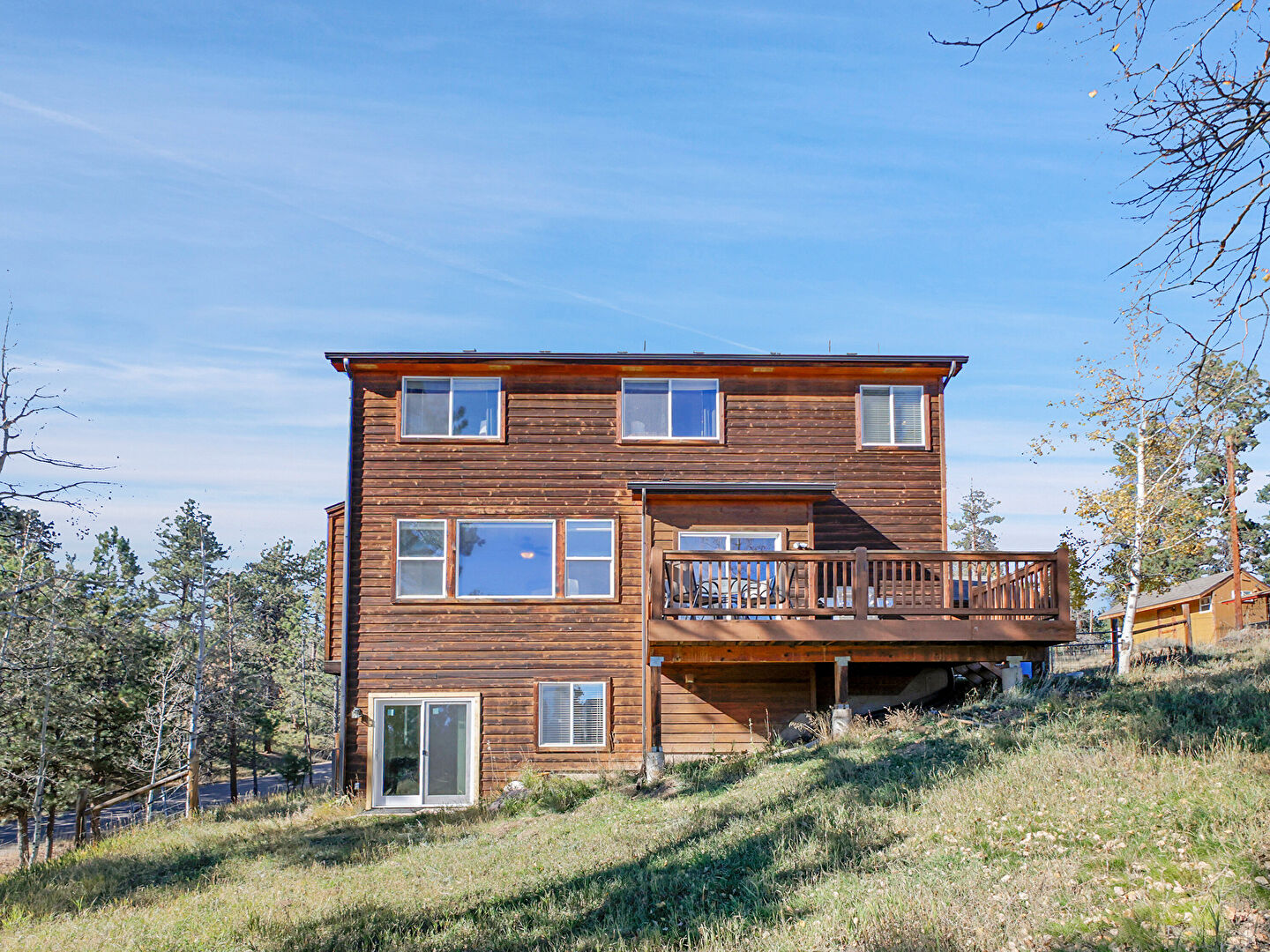 Basement Walk Out,  Concrete Foundation,  Deck,  Downspout,  Fence,  Gutters,  Horizontal Siding,  Lawn,  Wood Siding, Deck, Downspout, Horizontal Siding