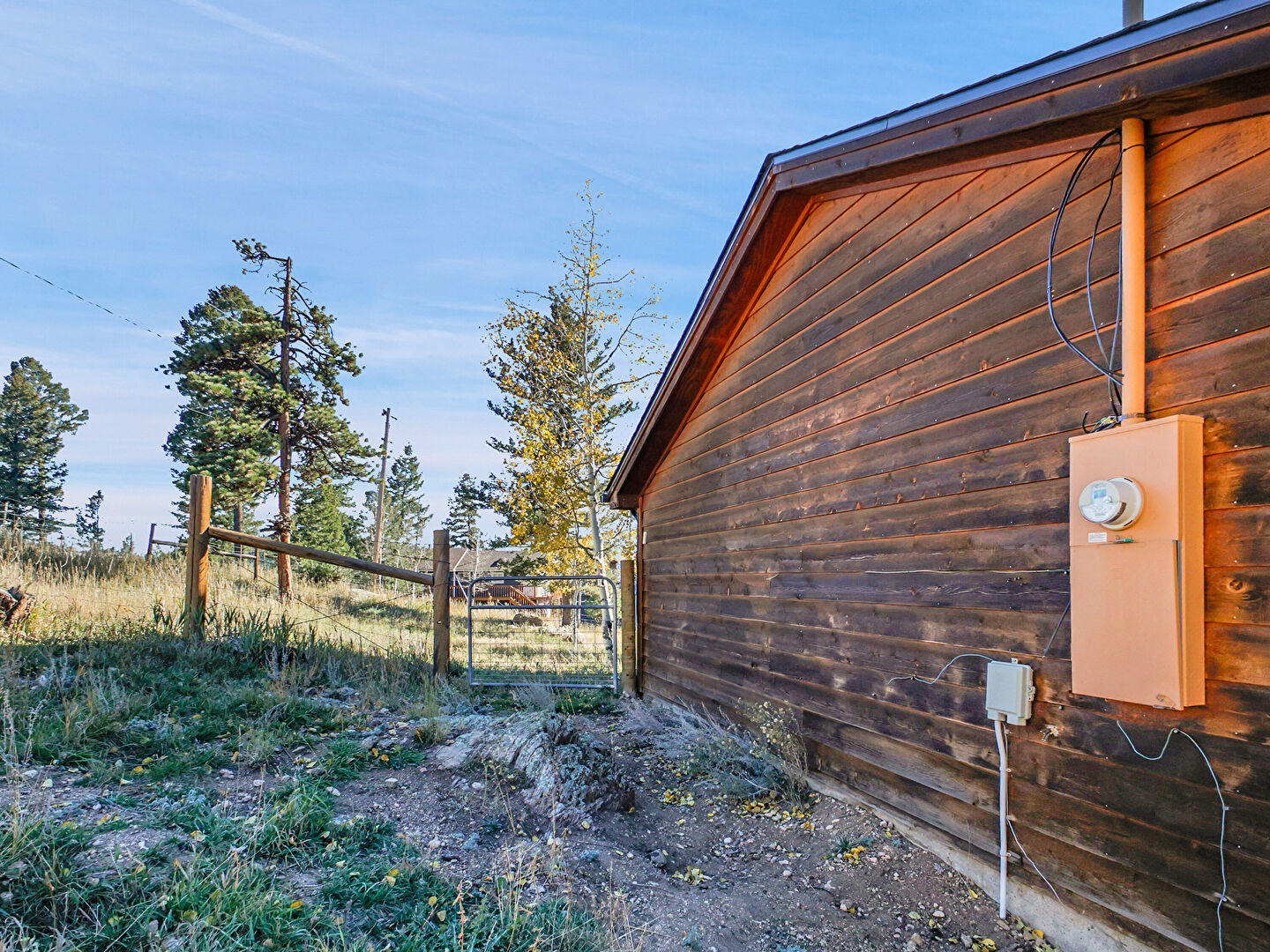 Concrete Foundation,  Deck,  Downspout,  Driveway,  Electric Meter,  Fence,  Garage,  Gate,  Gutters,  Horizontal Siding,  Shingle Roof,  Wood Siding, Concrete Foundation, Electric Meter, Fence