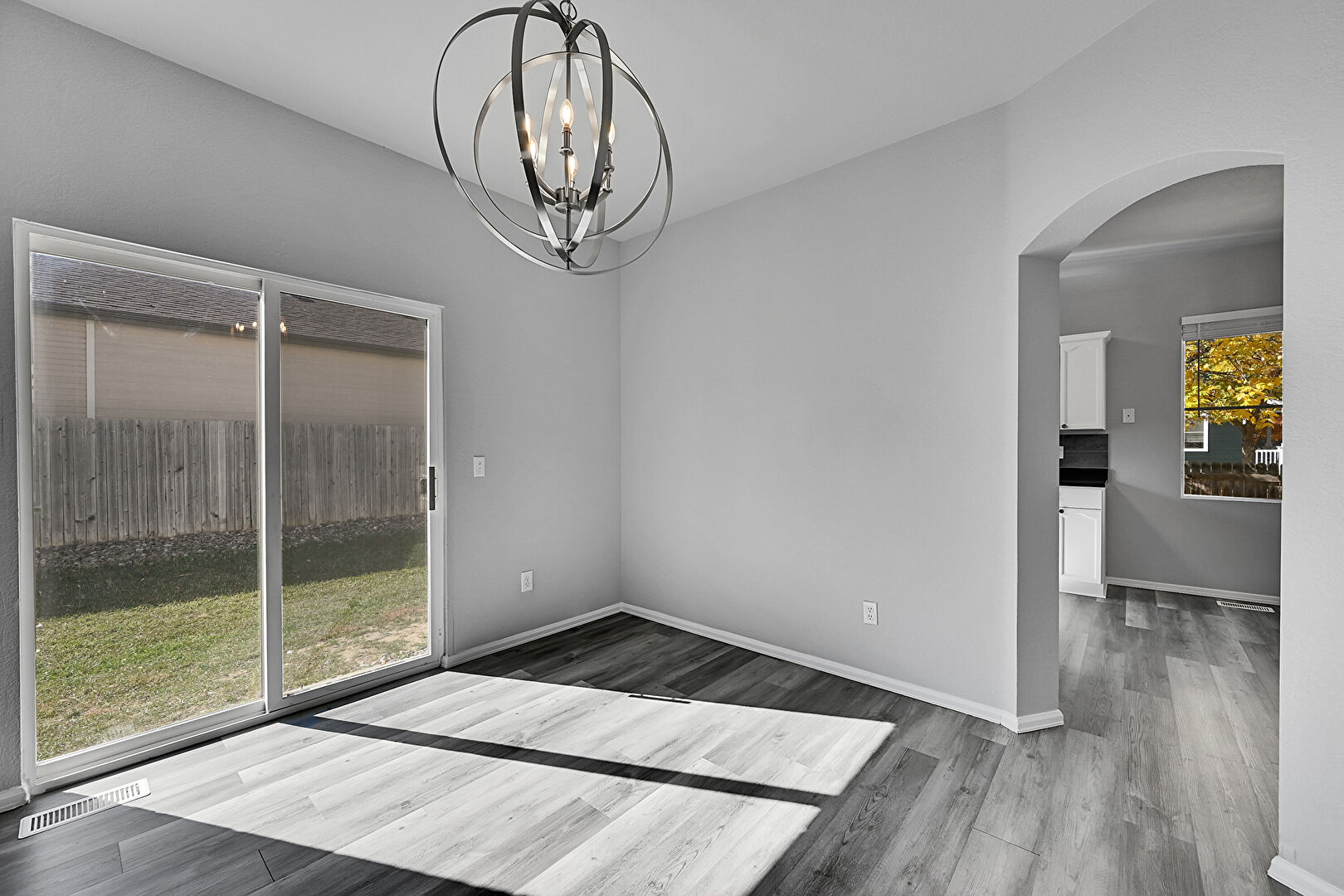Baseboards Wall, Drywall, Natural Light, Notable Chandelier, Vent, Wood Finish Floor, Baseboards Wall, Drywall, Wood Finish Floor
