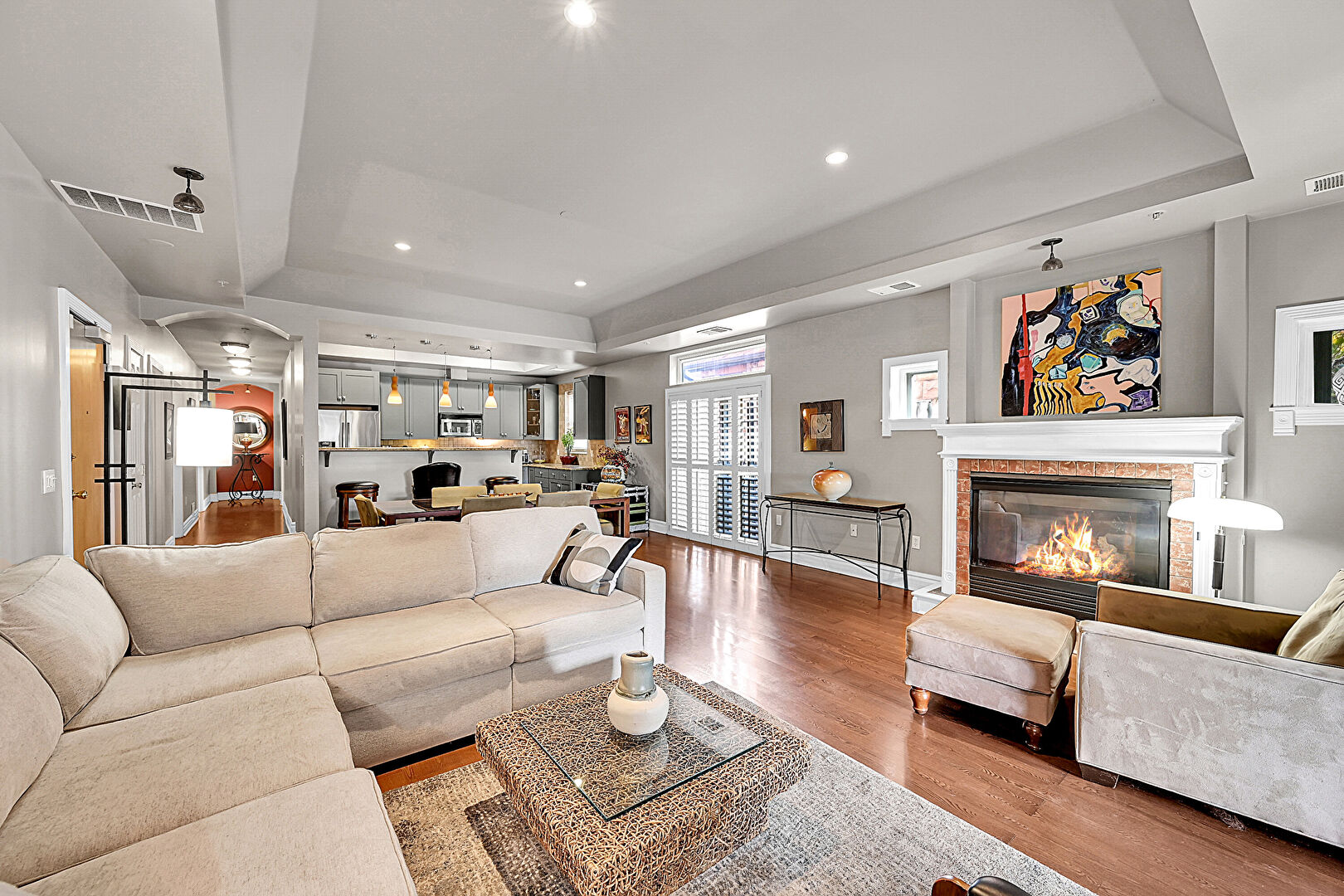 Arched Walkways, Baseboards Wall, Drywall, Fireplace, Natural Light, Recessed Lighting, Tray Ceiling, U Shaped Kitchen, Vent, Wood Finish Floor, Baseboards Wall, Natural Light, Recessed Lighting