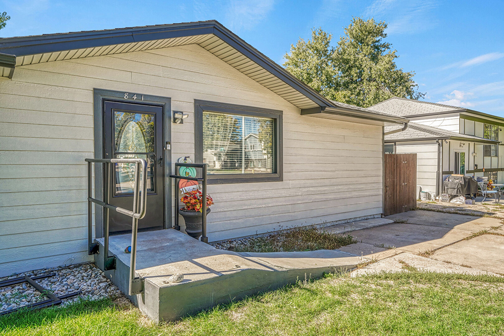 Concrete Foundation, Downspout, Fence, Gate, Horizontal Siding, Lawn, Parking Pad, Shingle Roof, Gutters, Horizontal Siding, Lawn