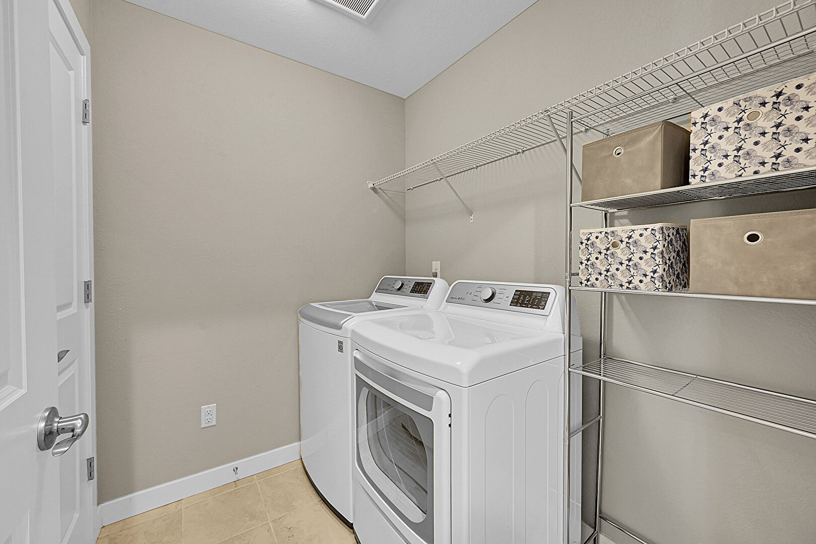 Drywall, Laundry, Tile Floor, Vent, Baseboards Wall