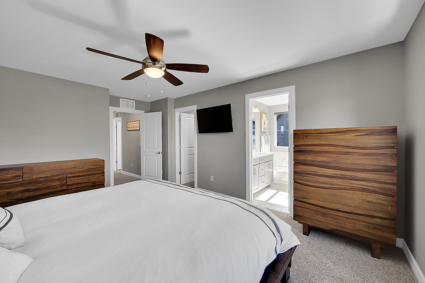 Baseboards Wall, Carpet, Ceiling Fan, Drywall, Ensuite Bathroom, Natural Light, Baseboards Wall, Vent