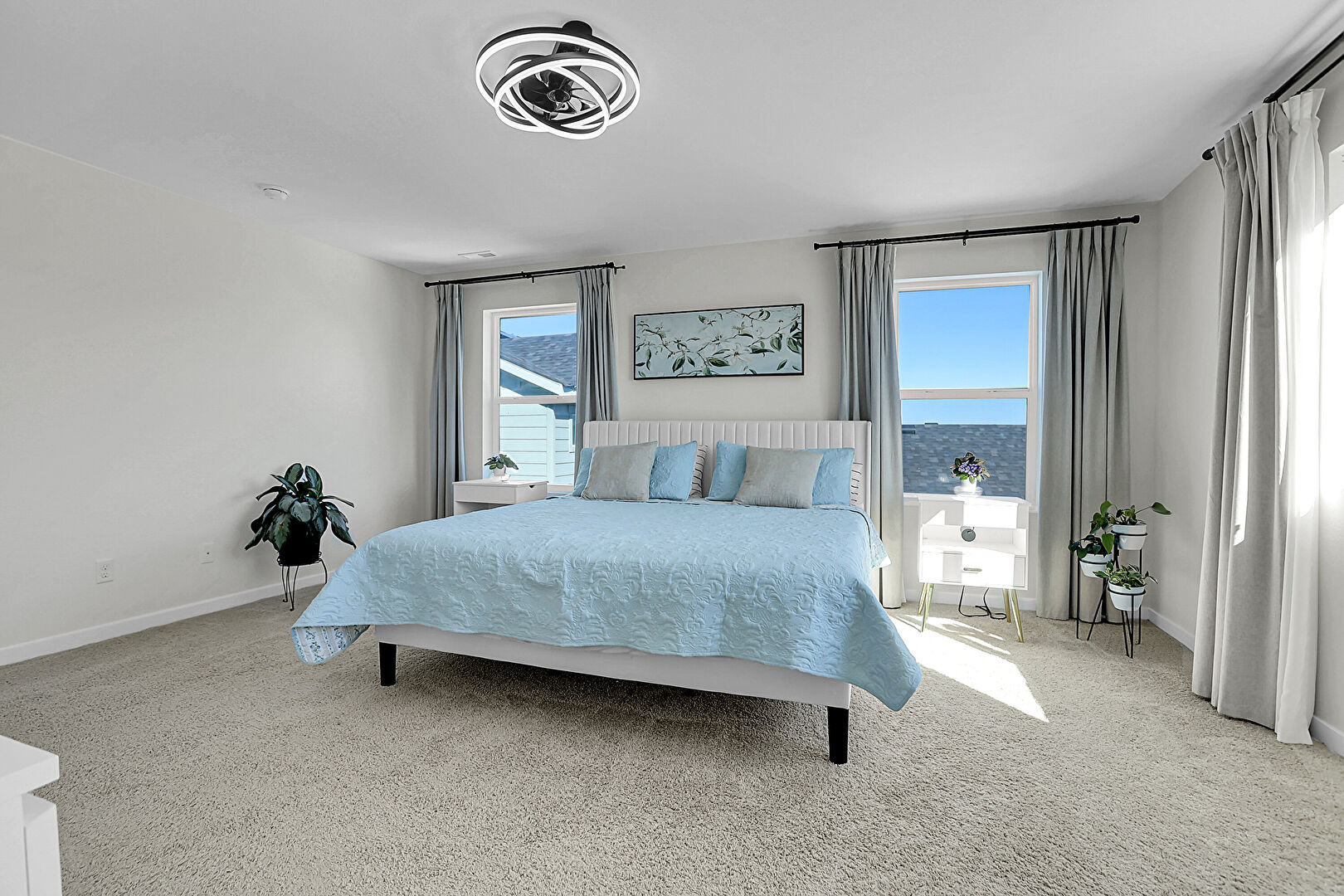 Baseboards Wall, Carpet, Closet, Drywall, Natural Light, Office Area, Textured Wall, Vent, Water View, Baseboards Wall, Closet, Drywall, Vent