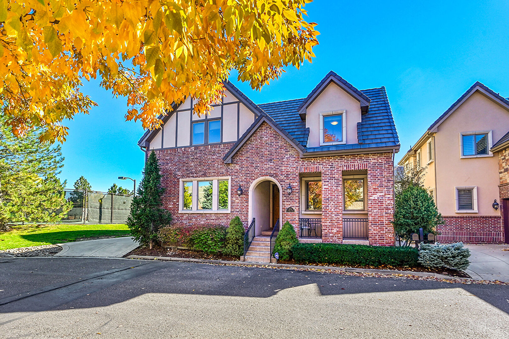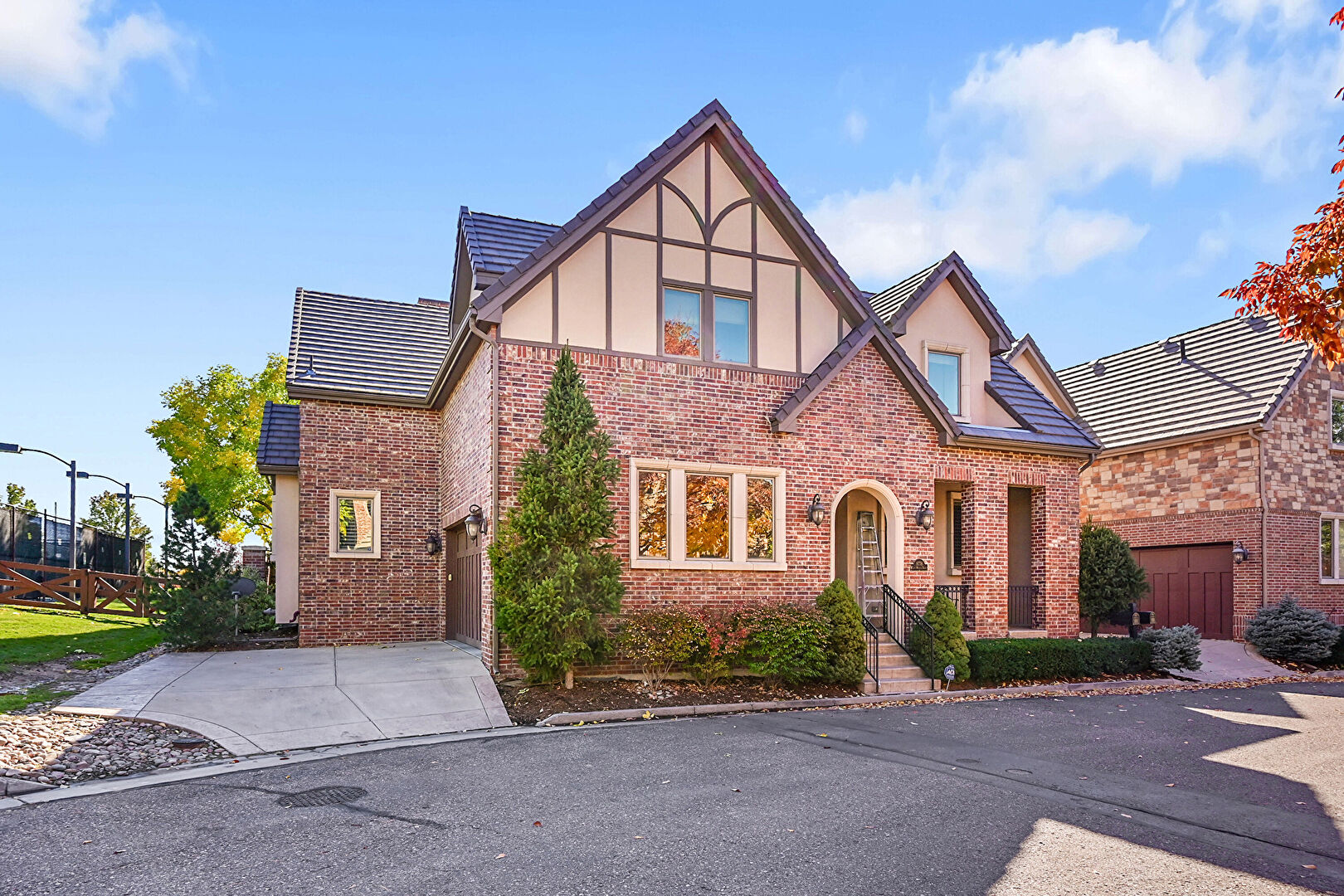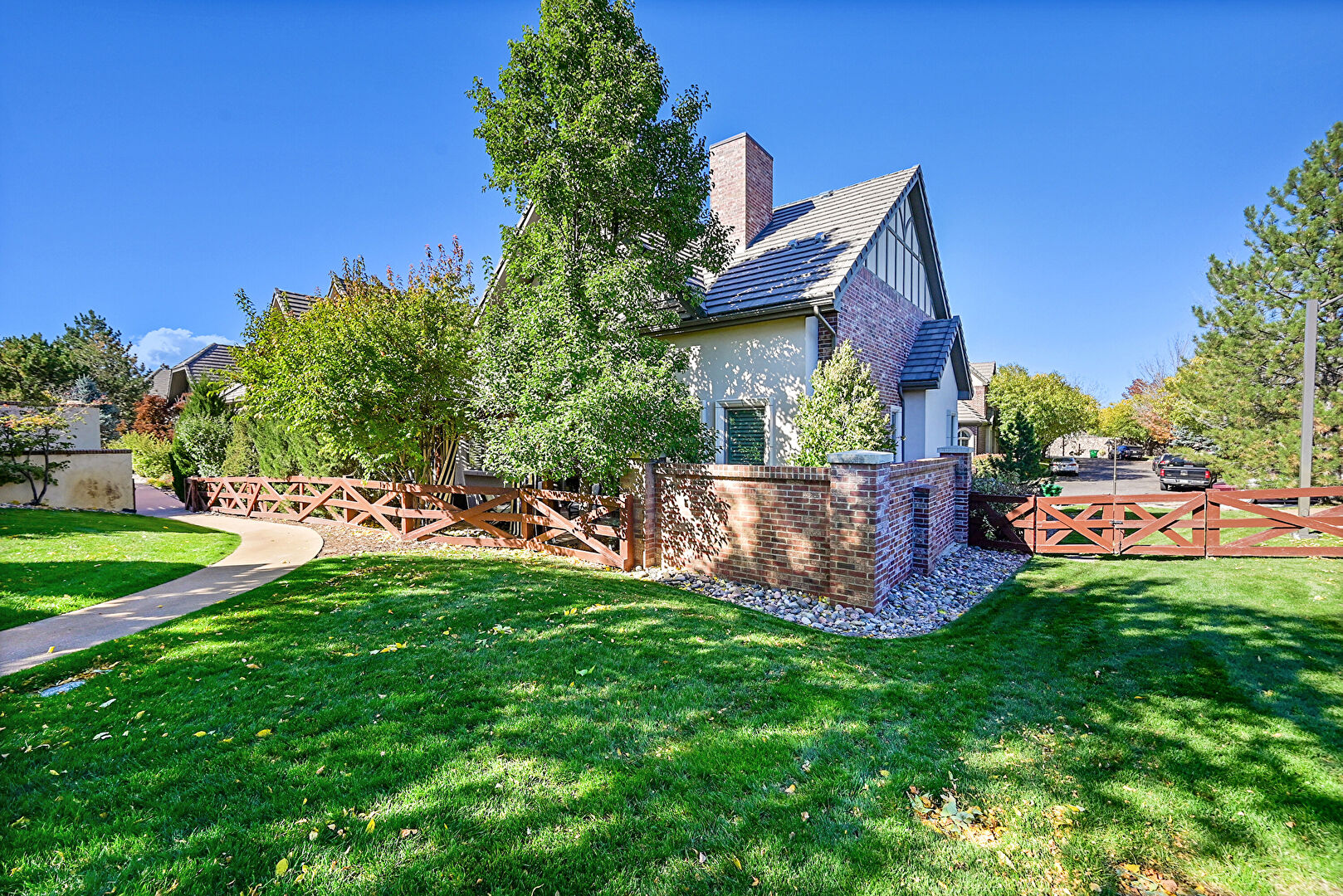 Brick Siding, Dormer Roof, Downspout, Driveway, Garage, Gutters, Lawn, Stucco Siding, Fence