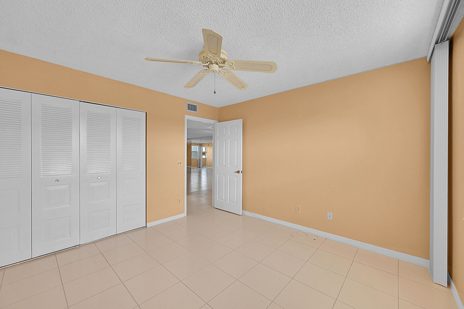 Baseboards Wall, Ceiling Fan, Closet, Drywall, Natural Light, Textured Ceiling, Tile Floor, Vent, Baseboards Wall, Tile Floor