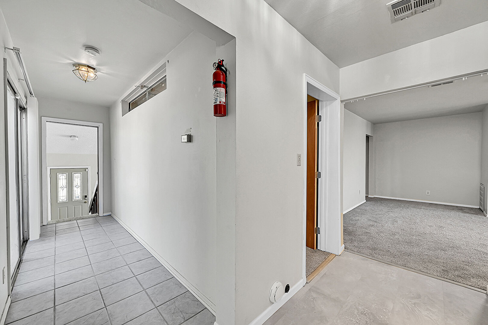 Baseboards Wall, Carpet, Drywall, Fire Extinguisher, Natural Light, Smoke Carbon Monoxide Detector, Tile Floor, Vent, Baseboards Wall, Tile Floor