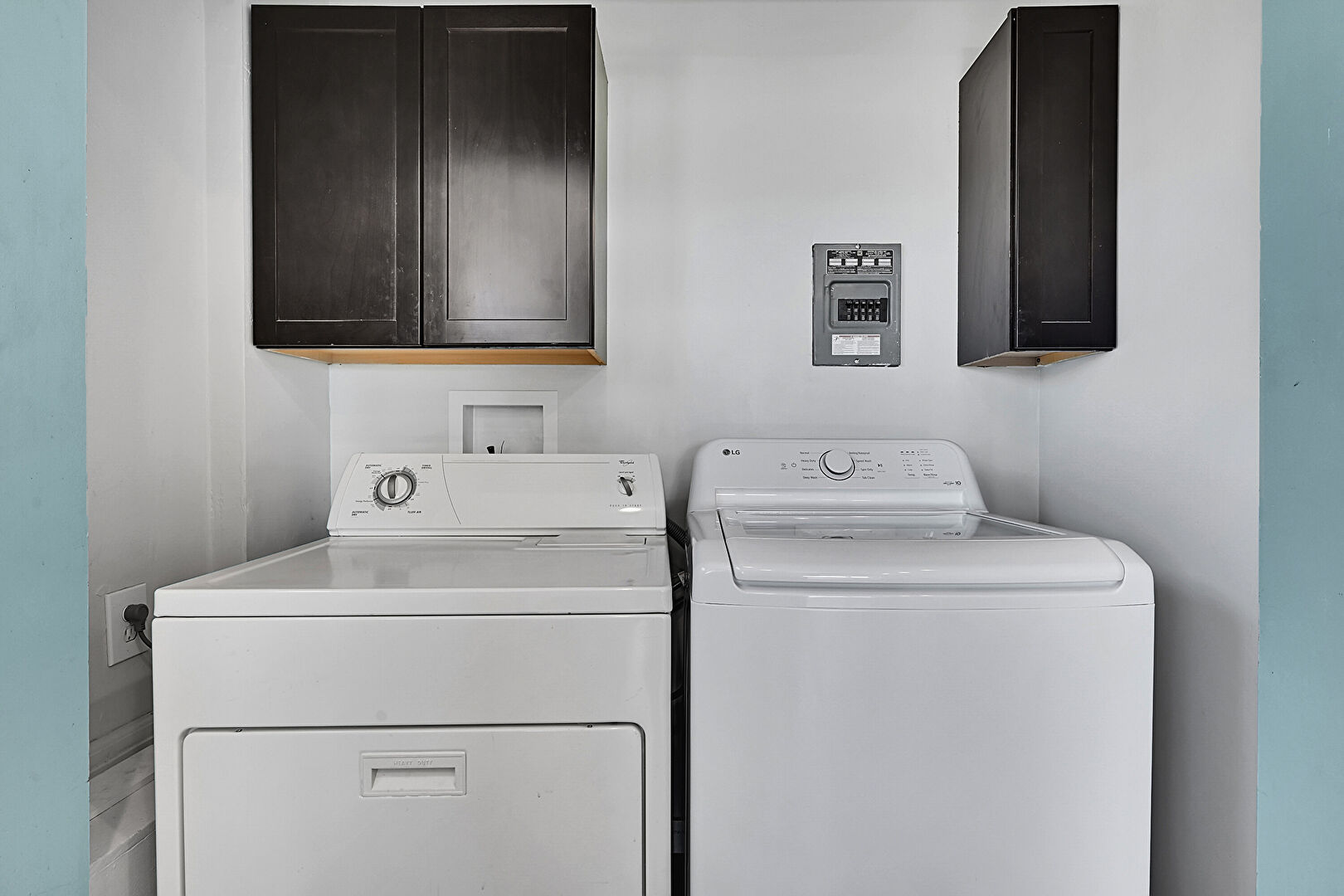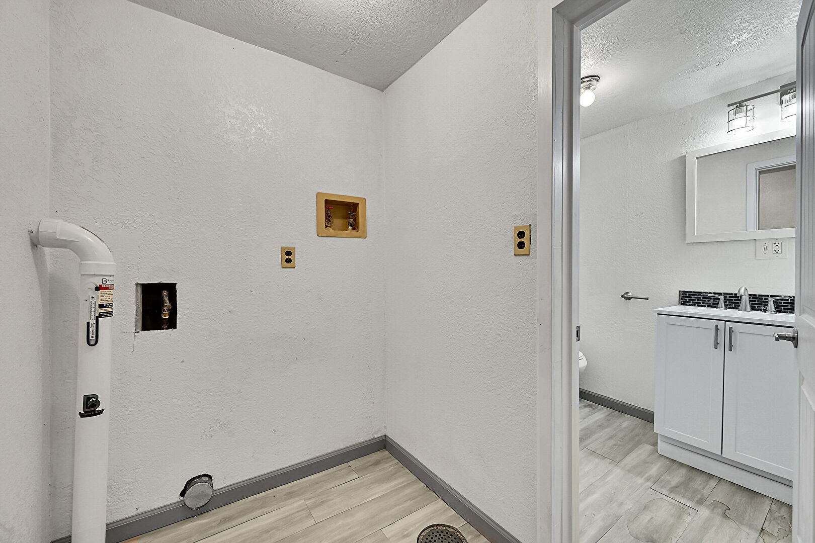 Drywall, Electric Dryer Hookup, Laundry, Textured Ceiling, Textured Wall, Washer Hookup, Wood Finish Floor, Baseboards Wall, Laundry