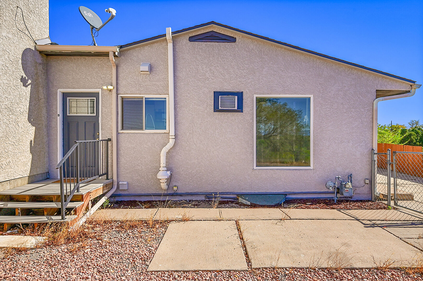 Downspout, Fence, Gas Meter, Gate, Gutters, Patio, Satellite Dish, Stoop, Stucco Siding, Downspout, Fence, Gutters
