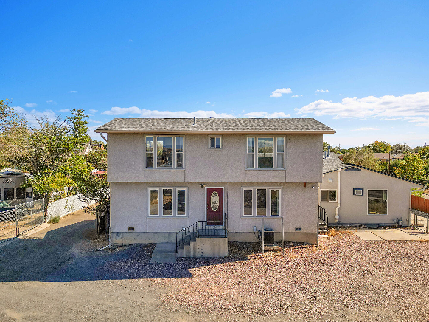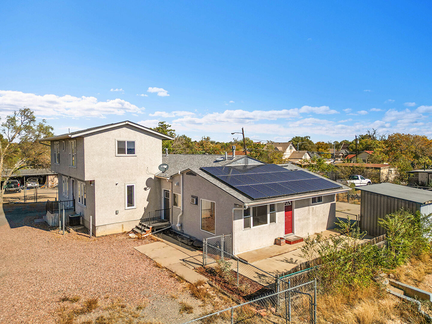 Central Ac, Concrete Foundation, Downspout, Entry Steps, Gate, Mountain View, Parking Pad, Residential View, Satellite Dish, Shingle Roof, Solar Panels, Stoop, Stucco Siding, Woods View, Fence, Mountain View, Residential View, Woods View