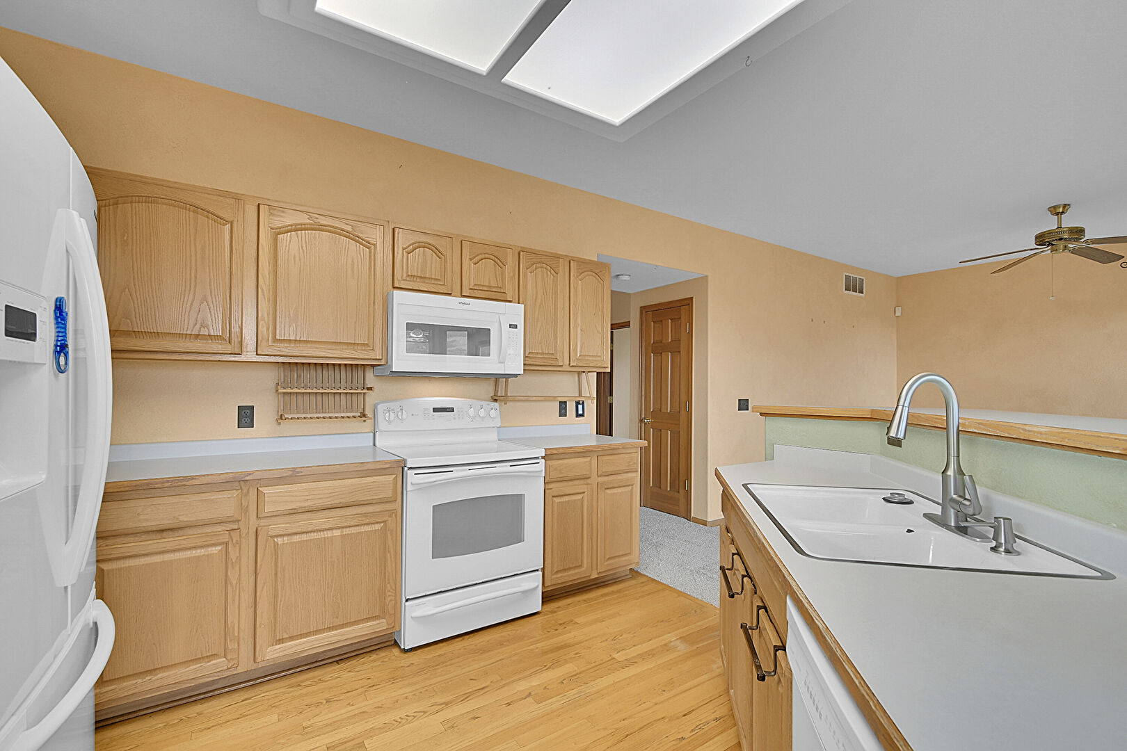 Ceiling Fan, Drywall, Raised Cabinets, Vent, Wood Finish Floor, Arched Cabinets