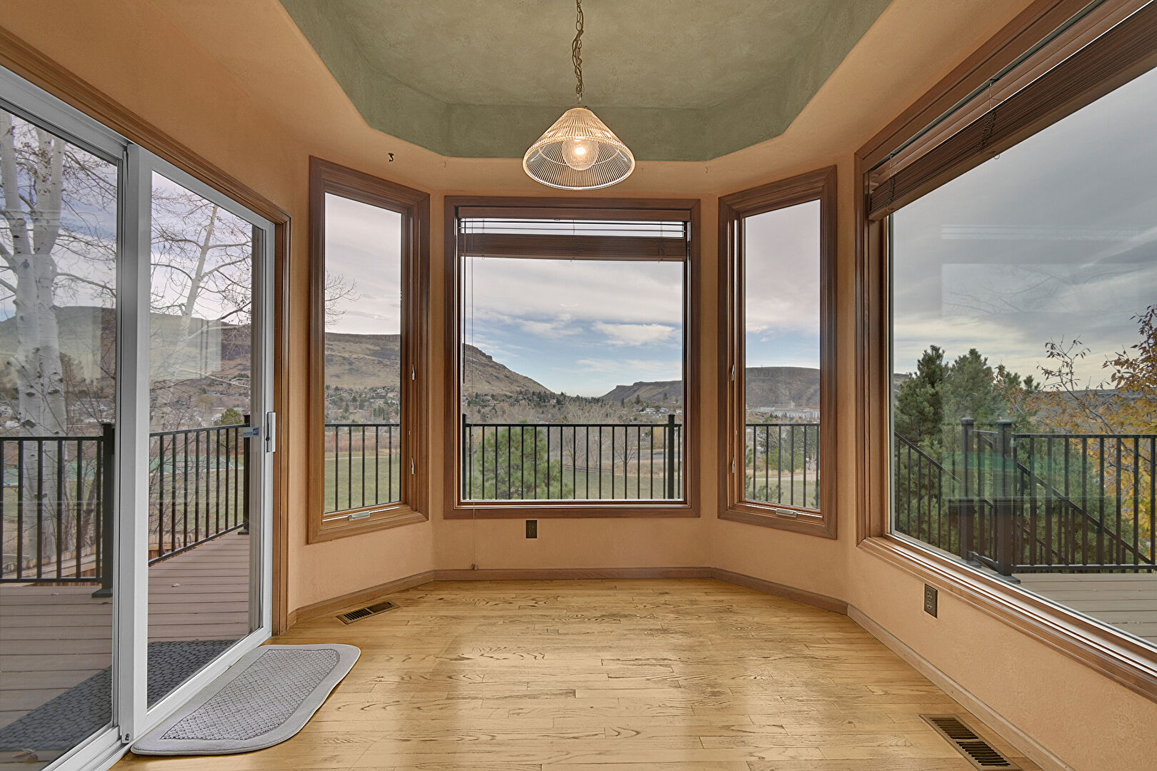 Drywall, Mountain View, Natural Light, Tray Ceiling, Vent, Wood Finish Floor, Baseboards Wall