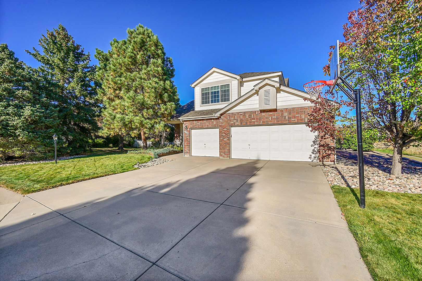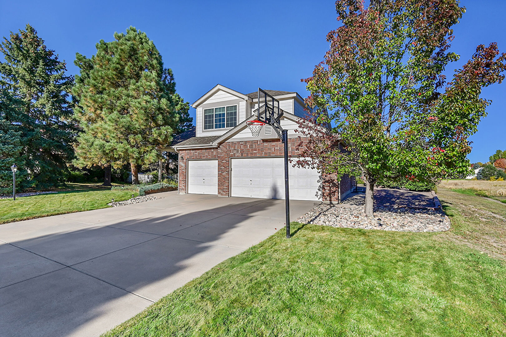 Brick Siding, Built In Garage, Concrete Foundation, Downspout, Driveway, Fence, Garage, Gutters, Horizontal Siding, Lawn, Porch, Shingle Roof, Downspout, Driveway, Garage, Horizontal Siding, Shingle Roof
