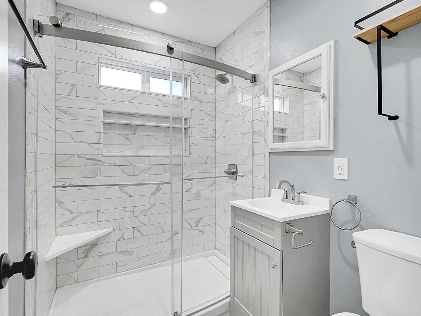 Drywall, Full Bathroom, Half Bathroom, Natural Light, Vanity, Vent, Wainscot Wall, Drywall, Vanity