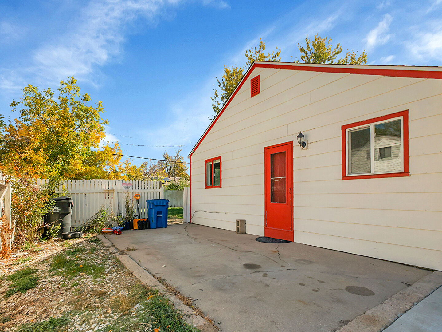 Downspout, Driveway, Fence, Horizontal Siding, Lawn, Parking Pad, Shingle Roof, Gutters, Horizontal Siding, Shingle Roof