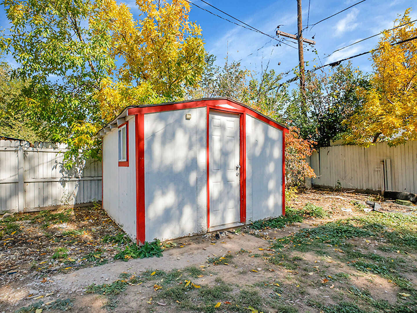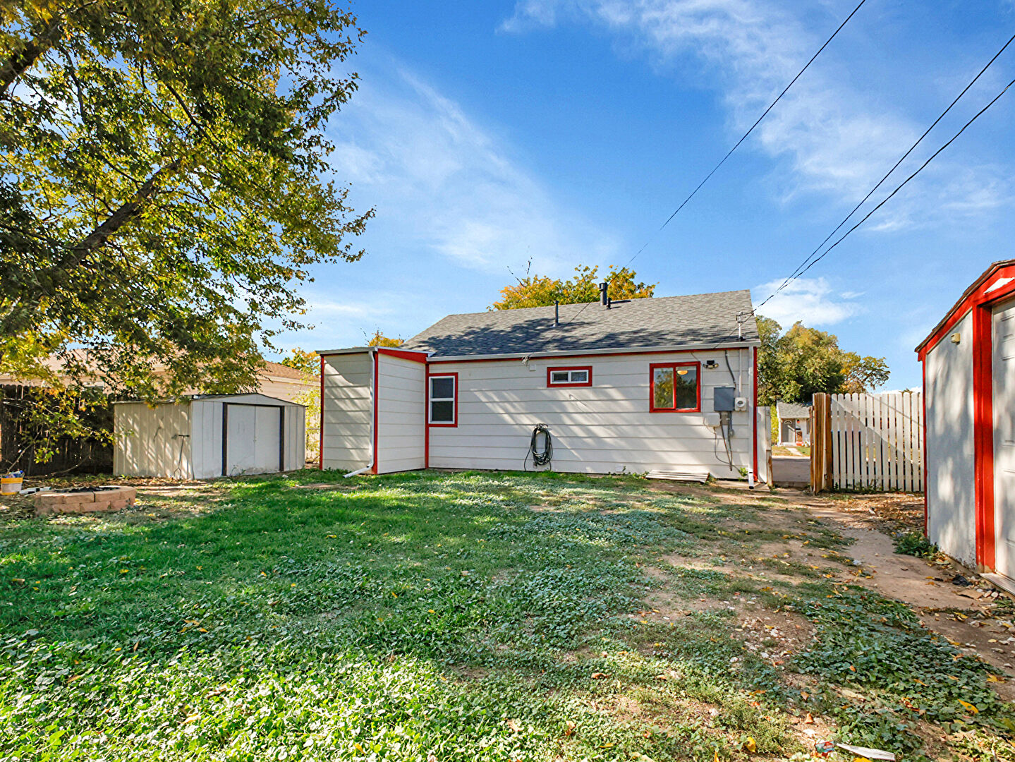 Downspout, Fence, Horizontal Siding, Lawn, Outdoor Structure, Shed, Gate