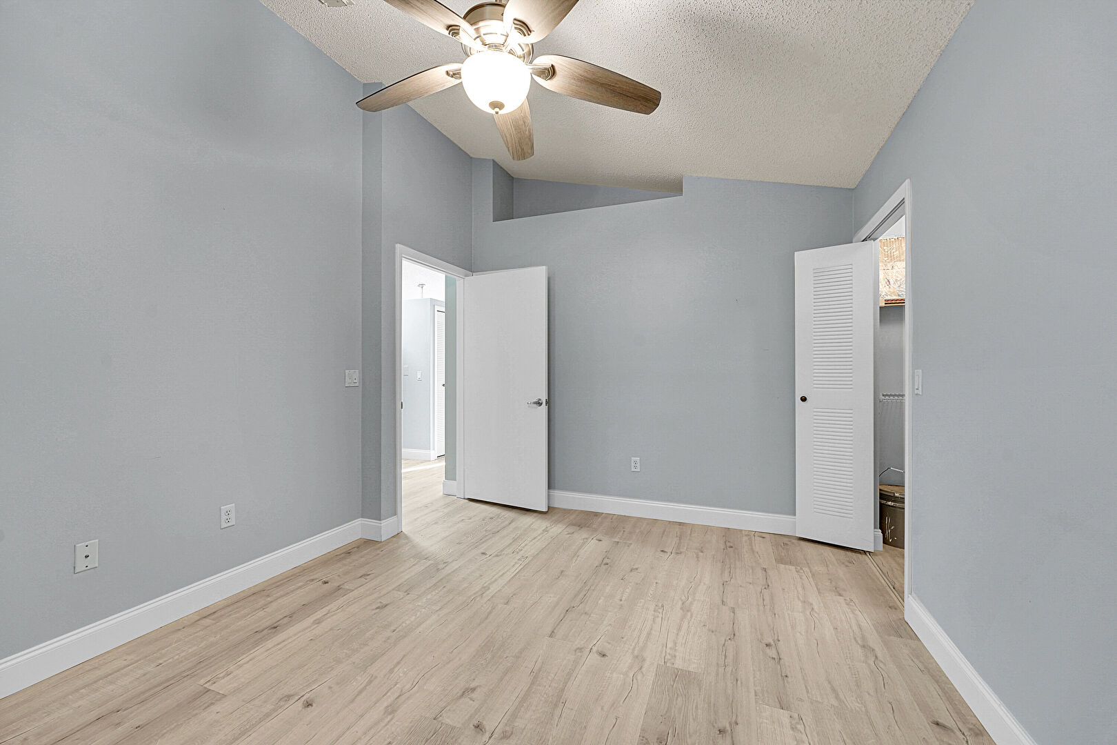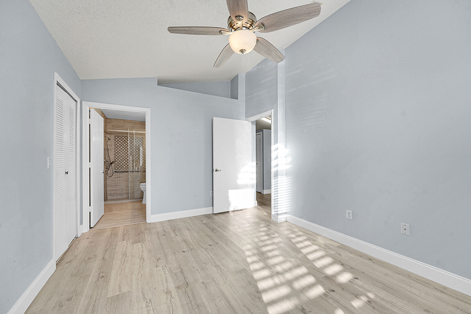 Baseboards Wall, Ceiling Fan, Closet, Drywall, Ensuite Bathroom, High Ceiling, Natural Light, Textured Ceiling, Vaulted Ceiling, Wood Finish Floor, Ceiling Fan, High Ceiling, Vaulted Ceiling