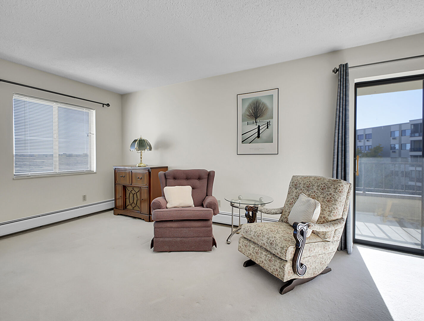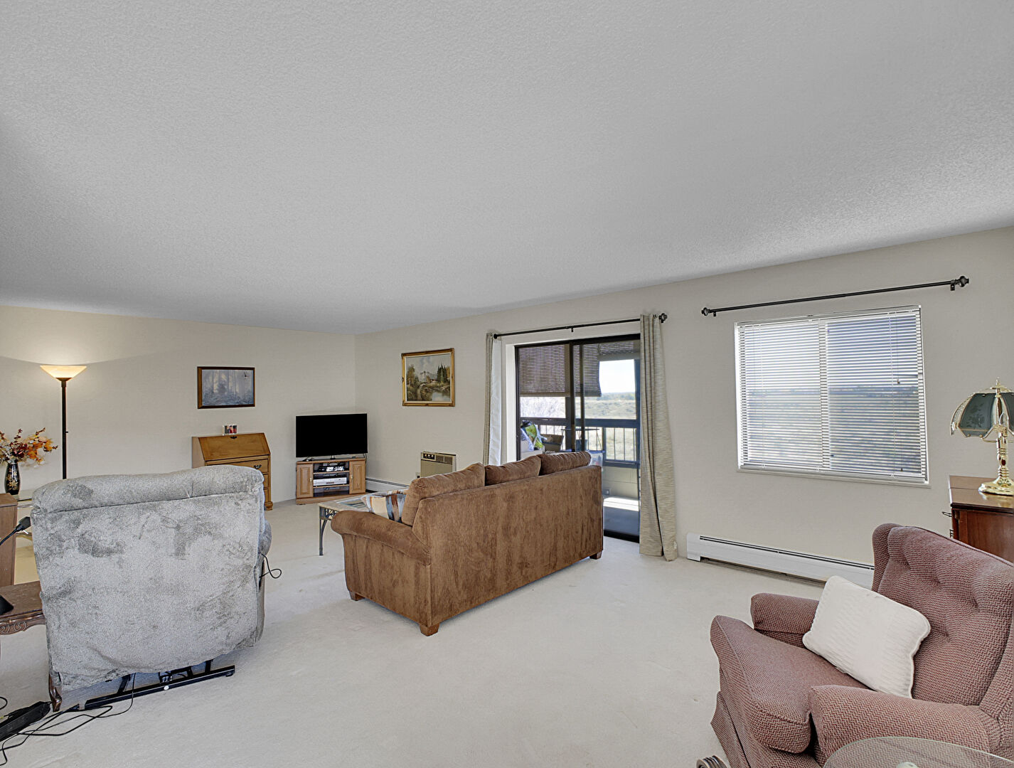 Baseboard Radiator, Drywall, Natural Light, Textured Ceiling, Carpet