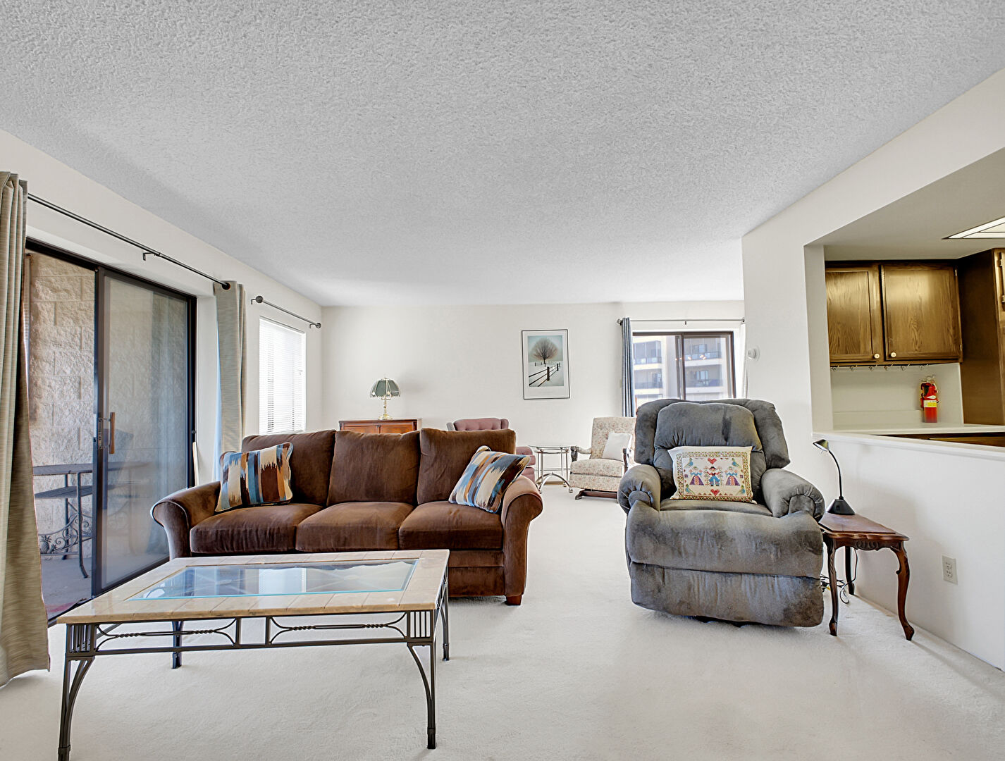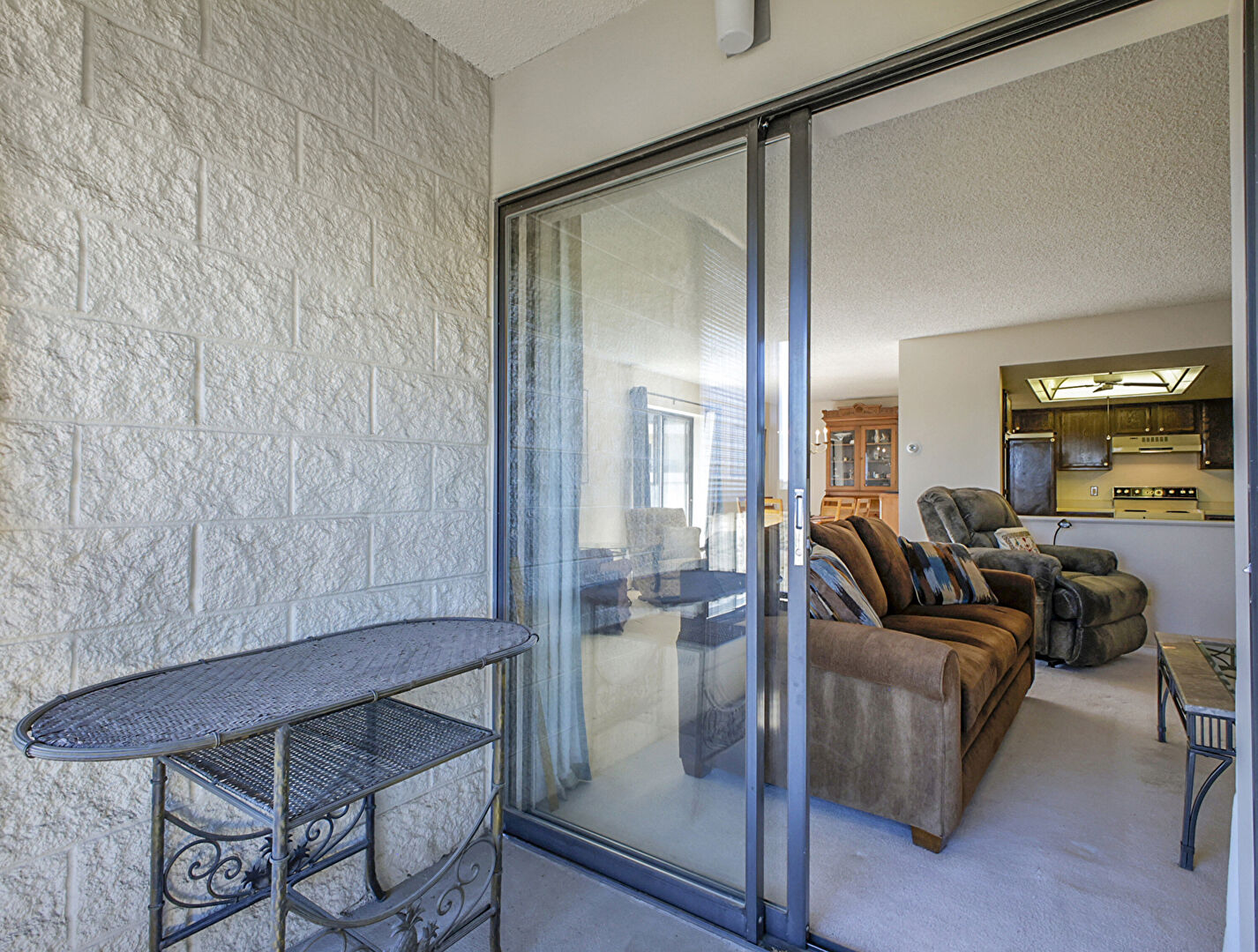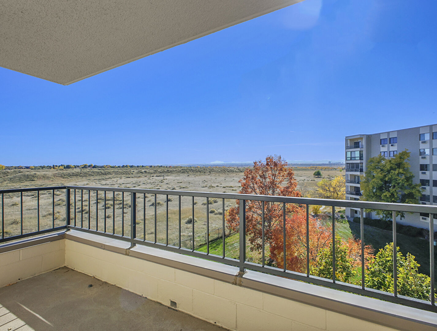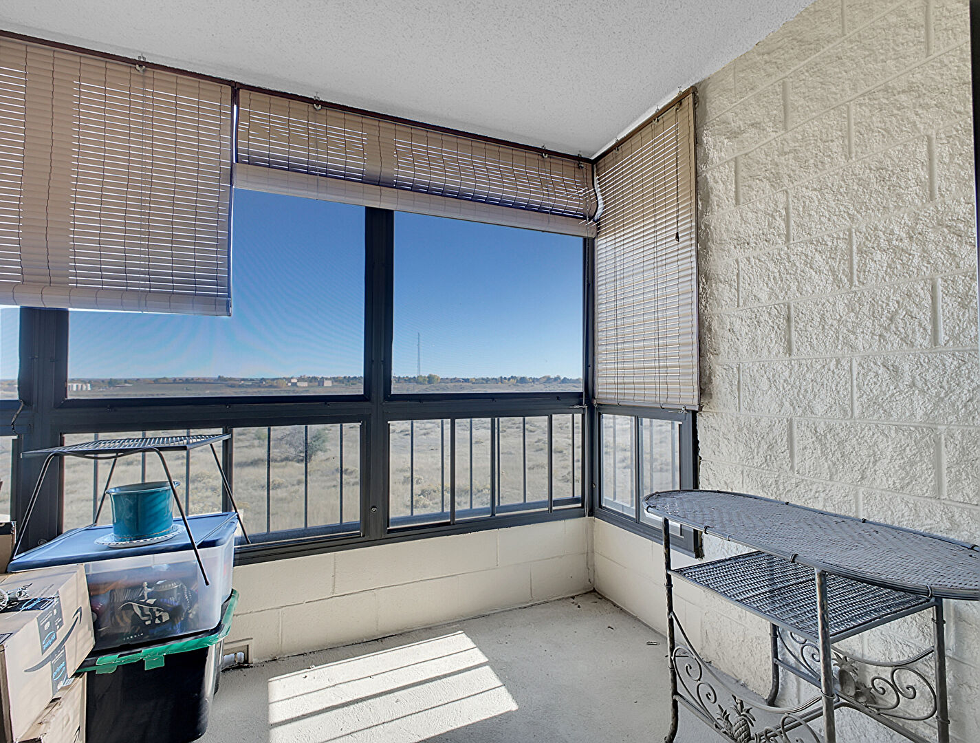 Balcony, Carpet, Desert View, Drywall, Fence, Textured Ceiling, Fire Extinguisher, Outdoor Living Space, Rural View