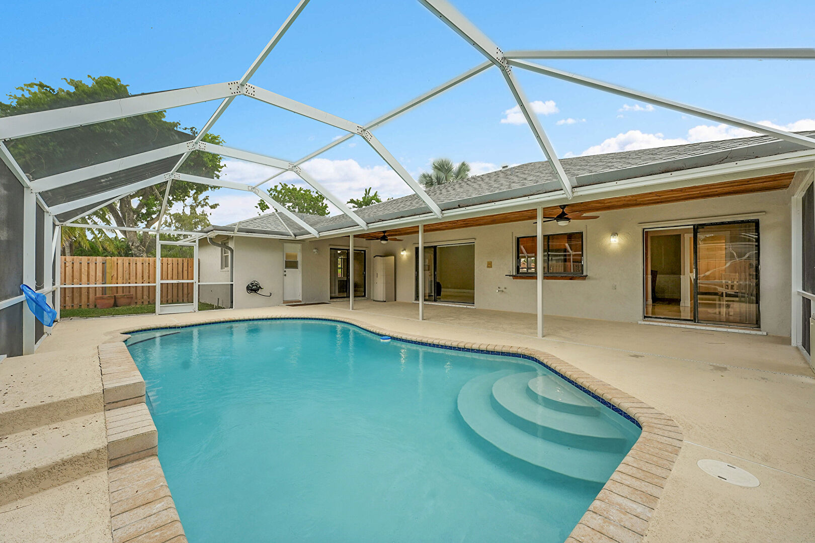 Ceiling Fan, Fence, Lanai, Lawn, Patio, Pool, Pool Water Feature, Residential View, Sunroom, Woods View, Fence, Hot Tub, Patio