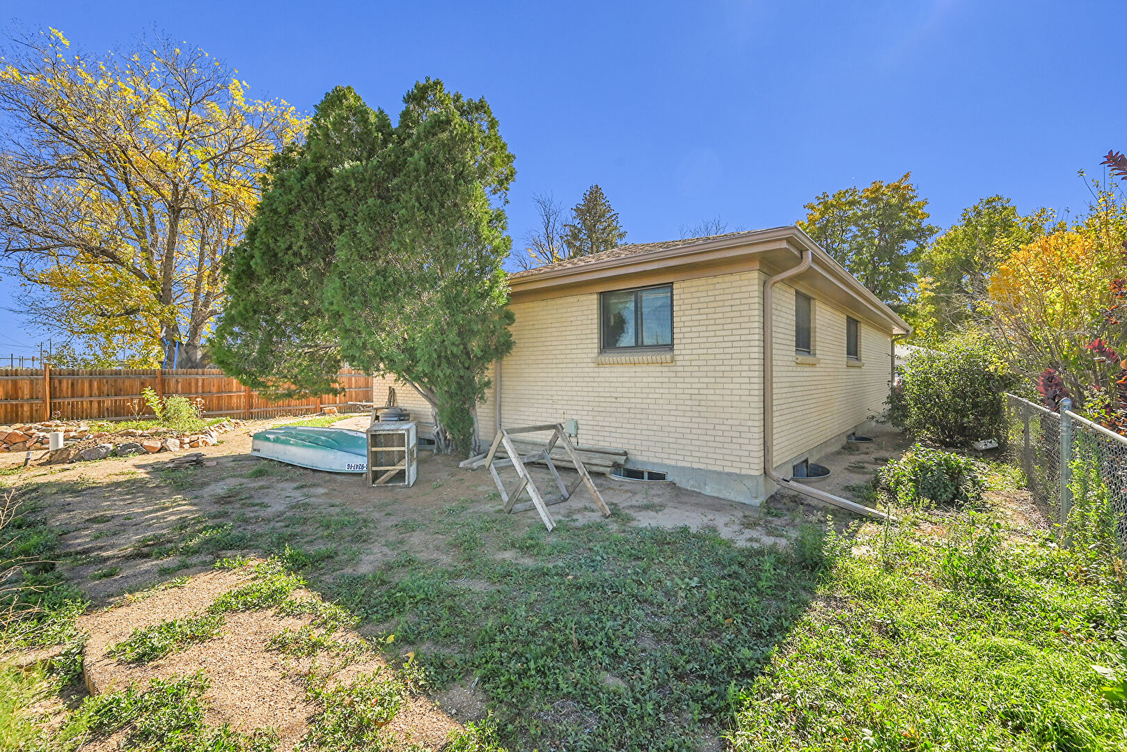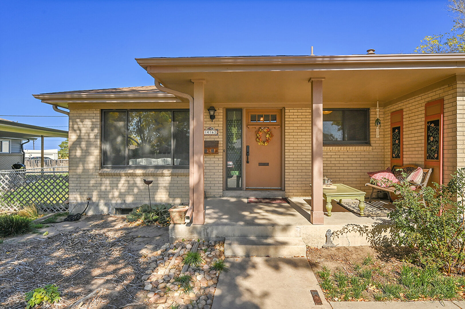 Brick Siding, Concrete Foundation, Downspout, Fence, Patio, Porch, Brick Siding, Gutters, Porch