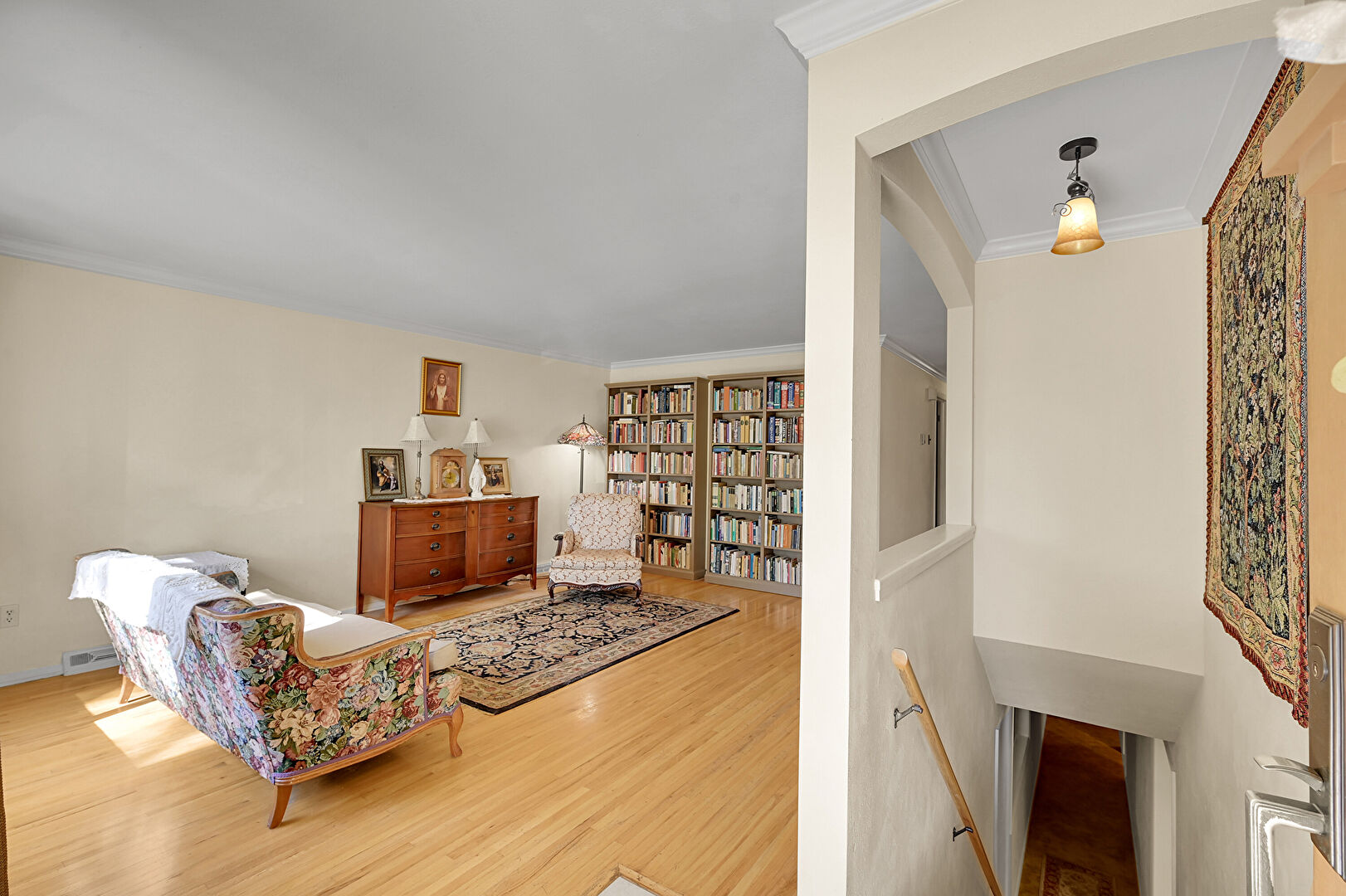 Baseboards Wall, Crown Molding, Drywall, Natural Light, Upstairs Landing, Vent, Wood Finish Floor, Arched Walkways, Baseboards Wall, Crown Molding, Drywall, Wood Finish Floor