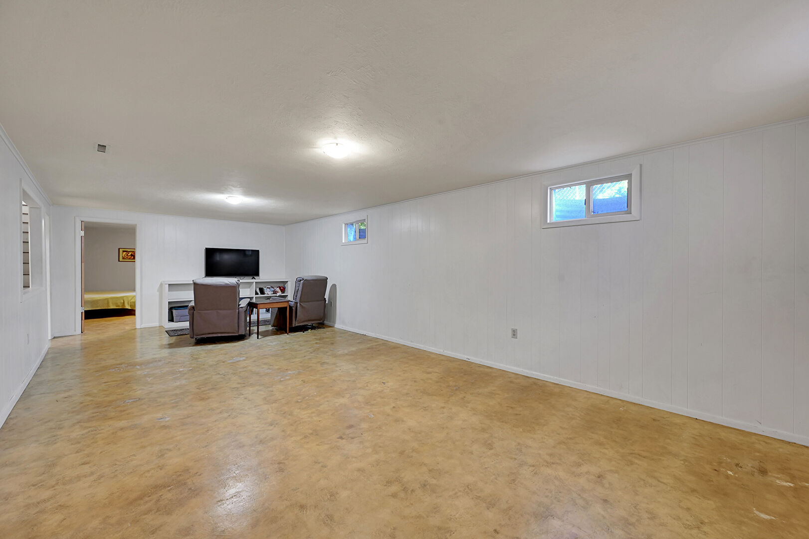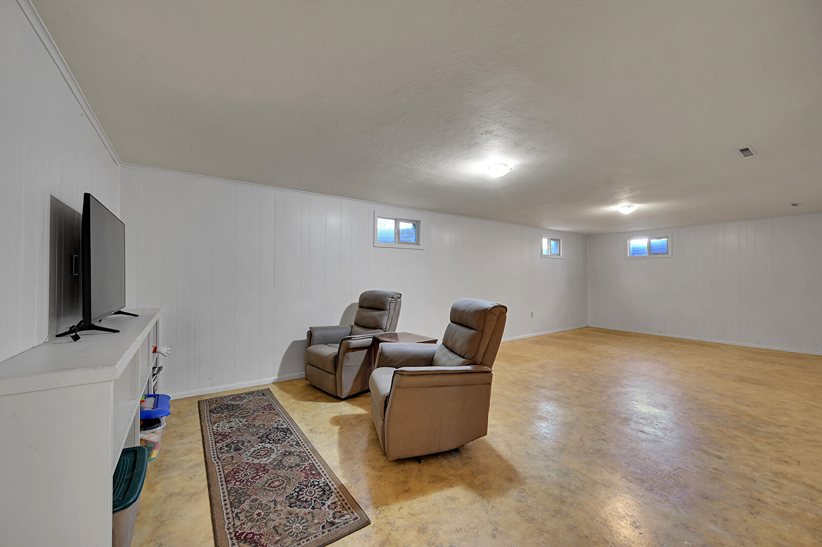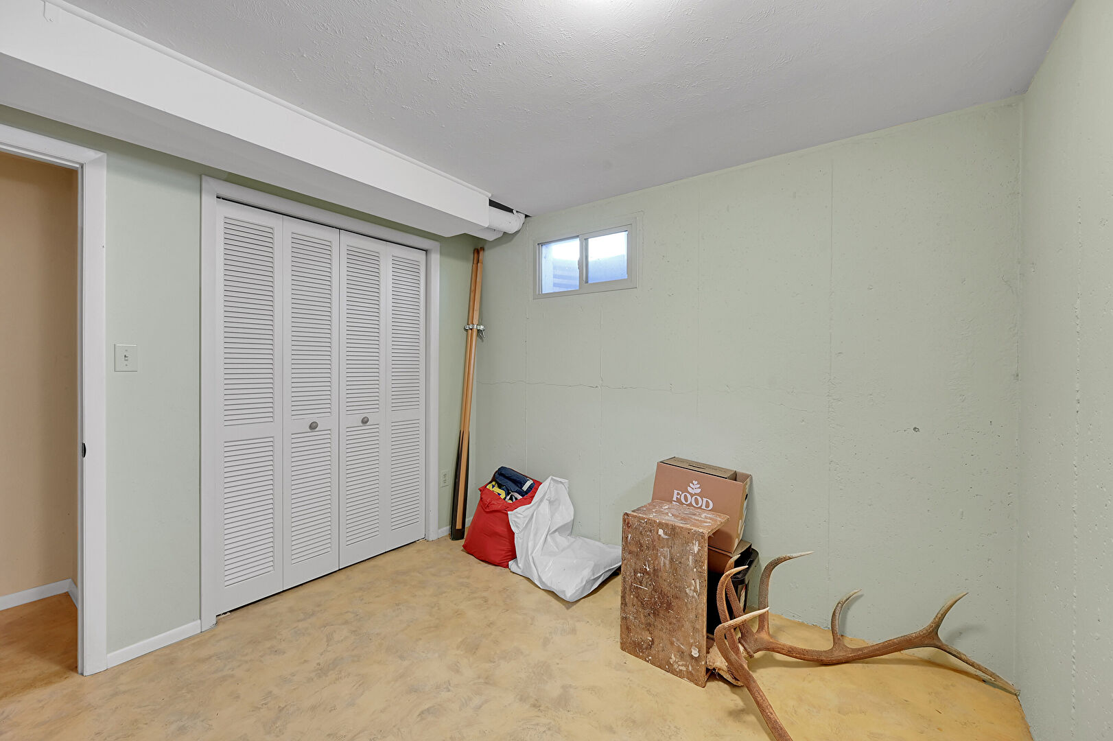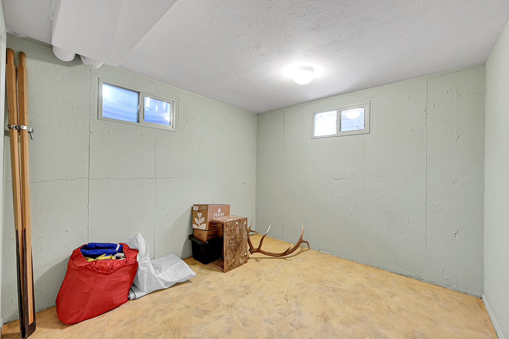 Baseboards Wall, Basement, Carpet, Concrete Foundation, Drywall, Natural Light, Textured Ceiling, Basement, Natural Light