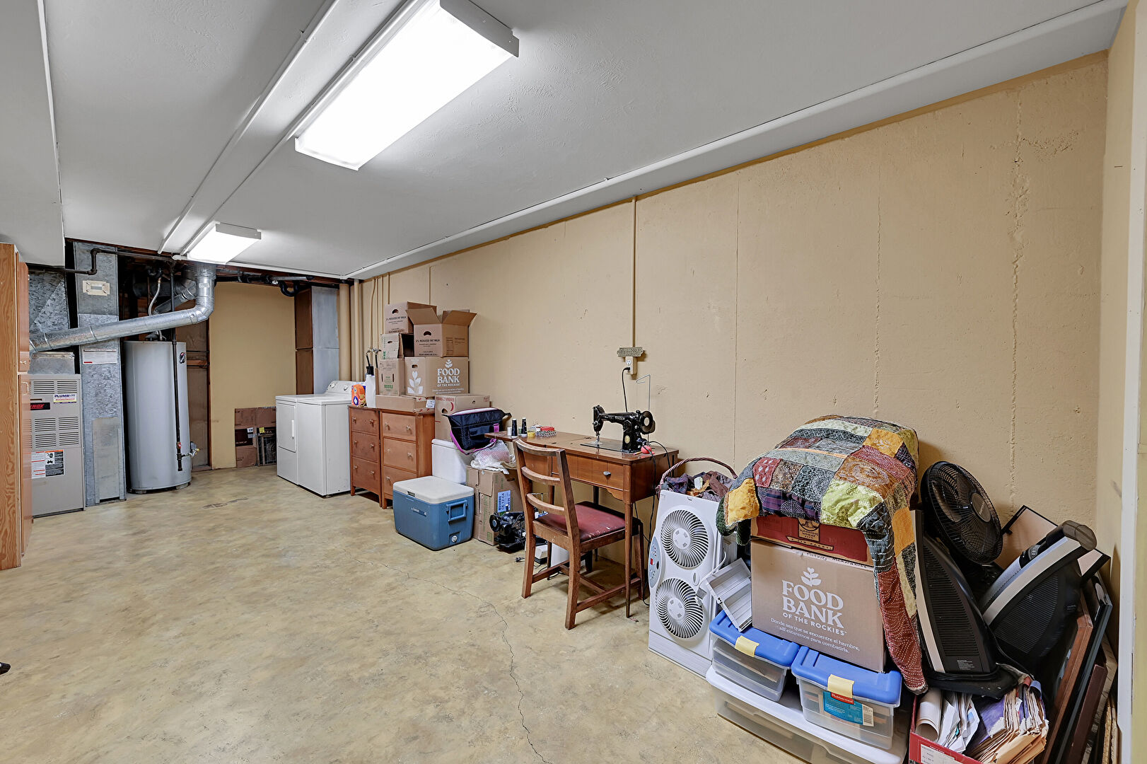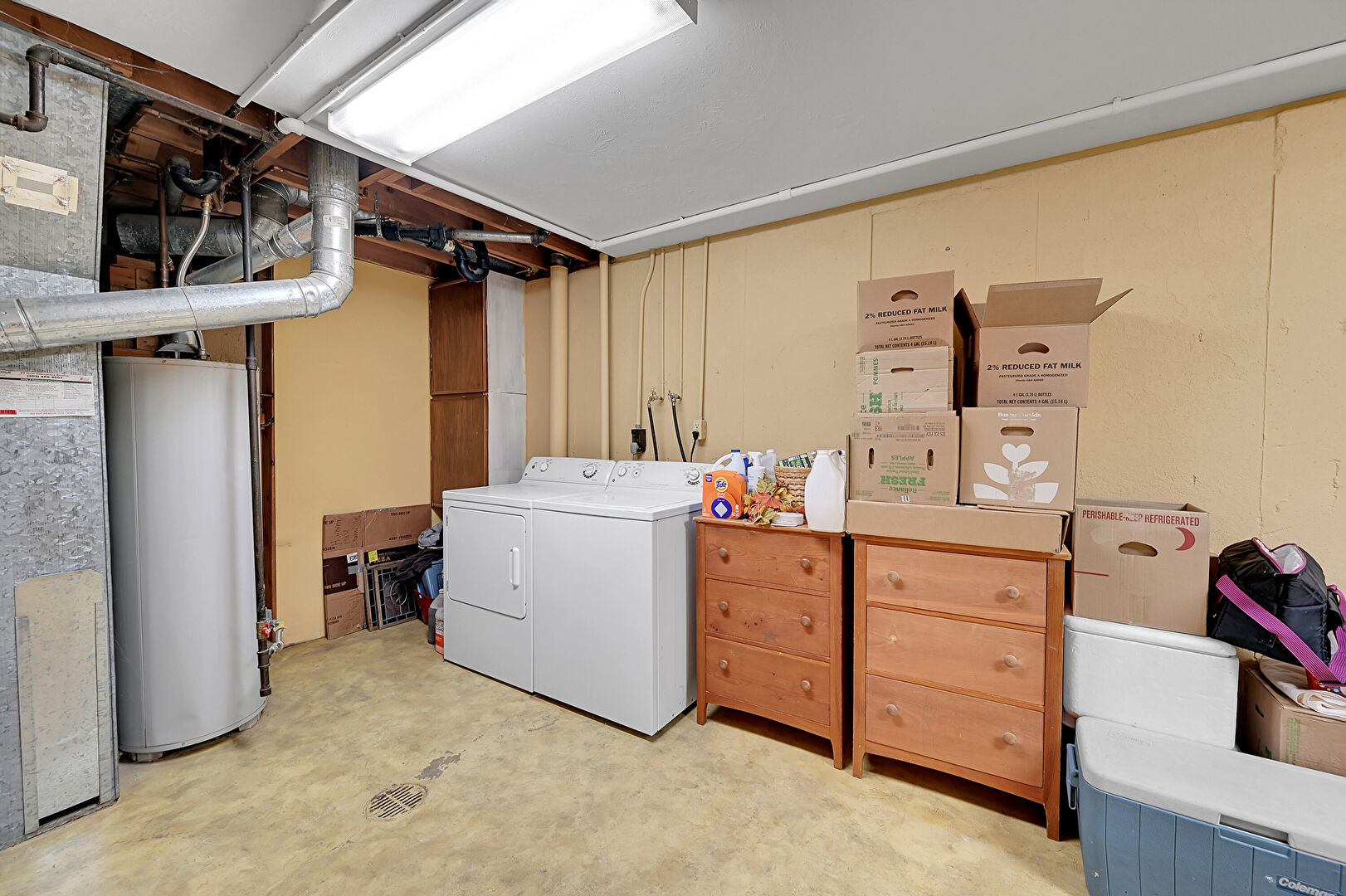 Basement, Concrete Floor, Drywall, Furnace, Laundry, Washer Dryer, Water Heater, Basement, Washer Dryer, Water Heater