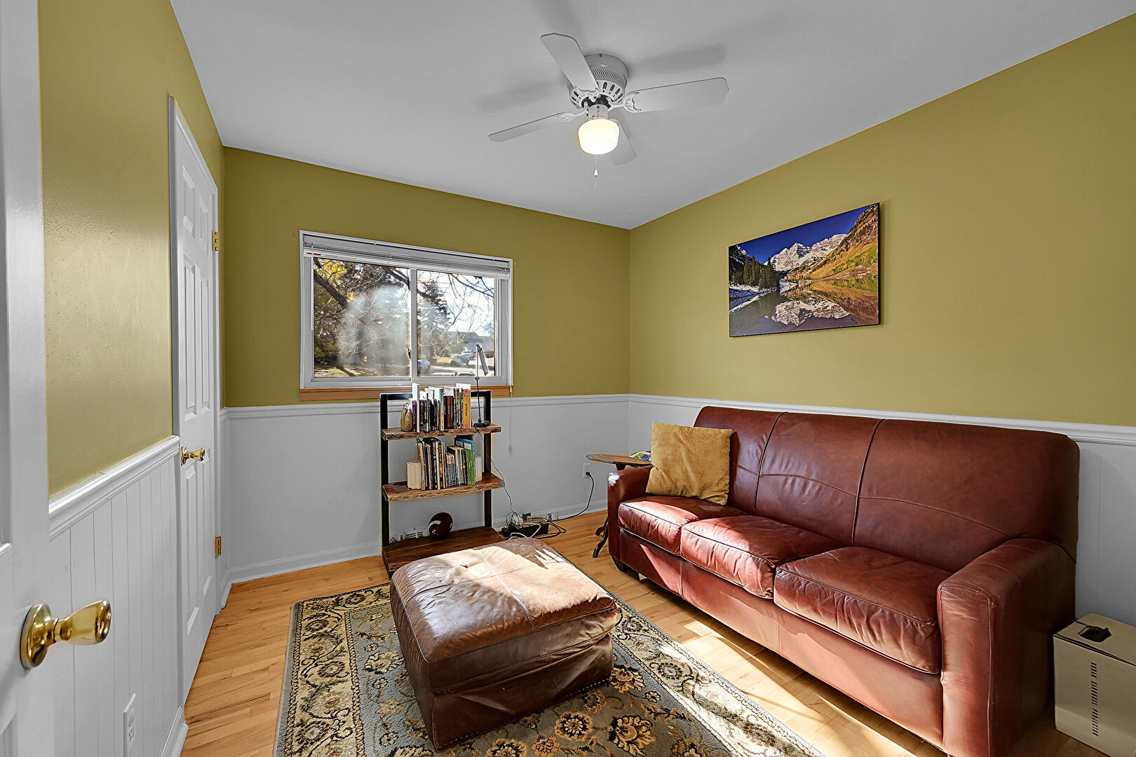 Baseboards Wall, Basement, Carpet, Ceiling Fan, Crown Molding, Drop Ceiling, Drywall, Natural Light, Stairs, Wainscot Wall, Wood Finish Floor, Baseboards Wall, Drywall, Notable Chandelier, Vent